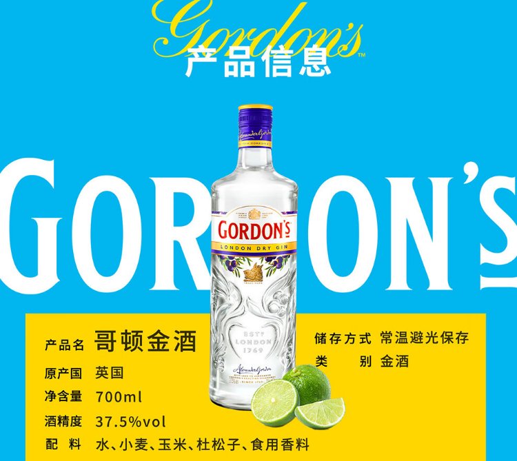Gordon's liquor UK London gin distilled liquor 700ml