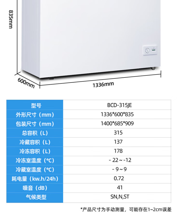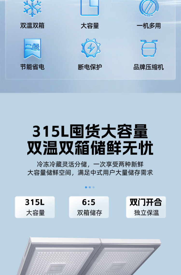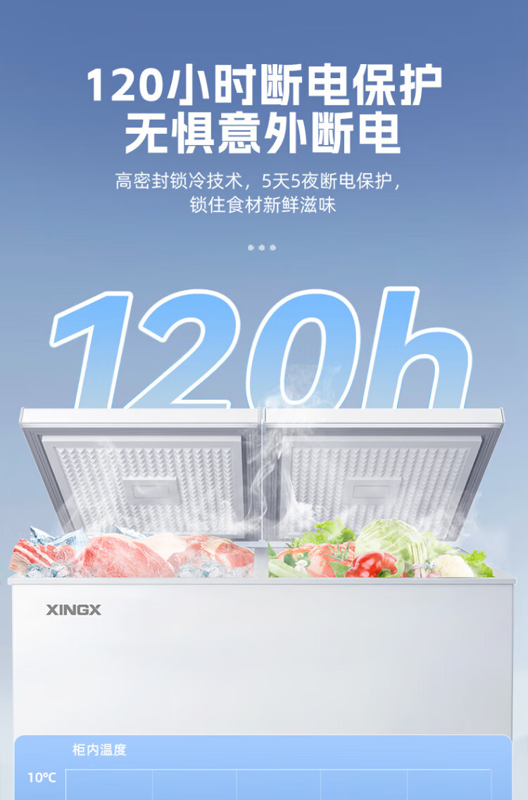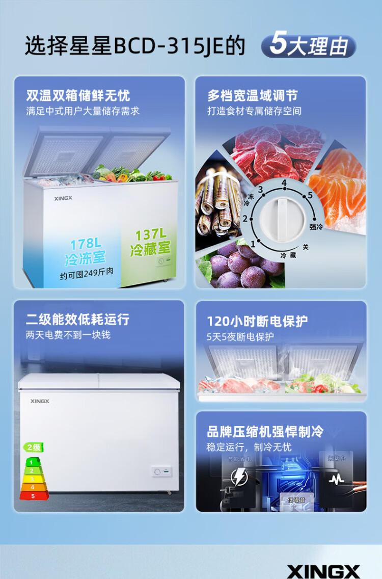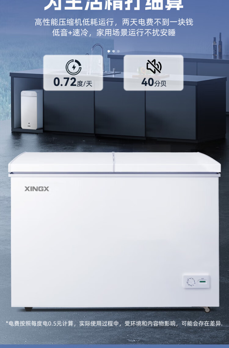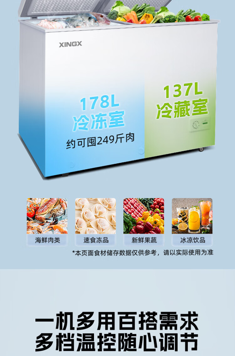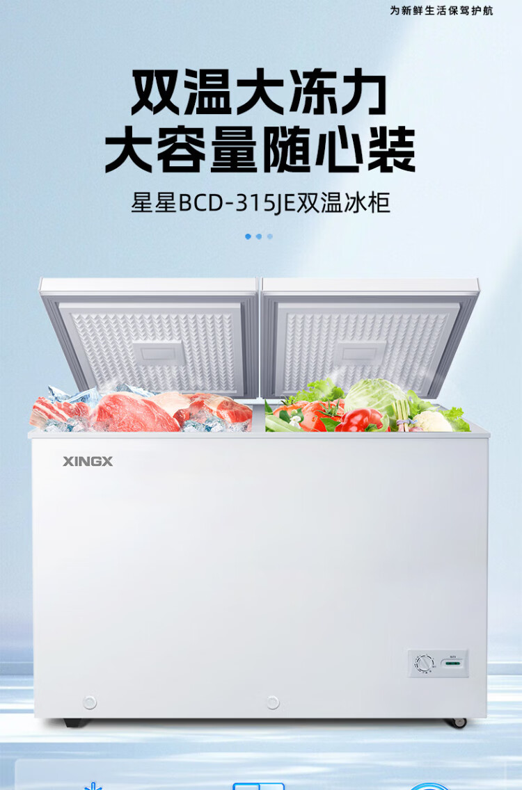 Xingx (XINGX) 315L dual-temperature double-box freezer, large freezer and small refrigeration, horizontal refrigerator, large-capacity top-opening freezer BCD-315JE national subsidy