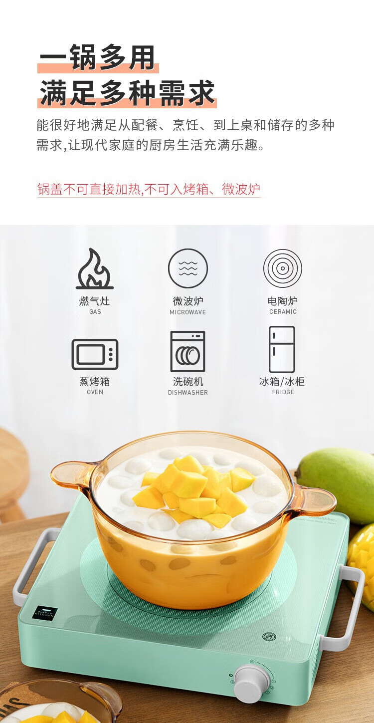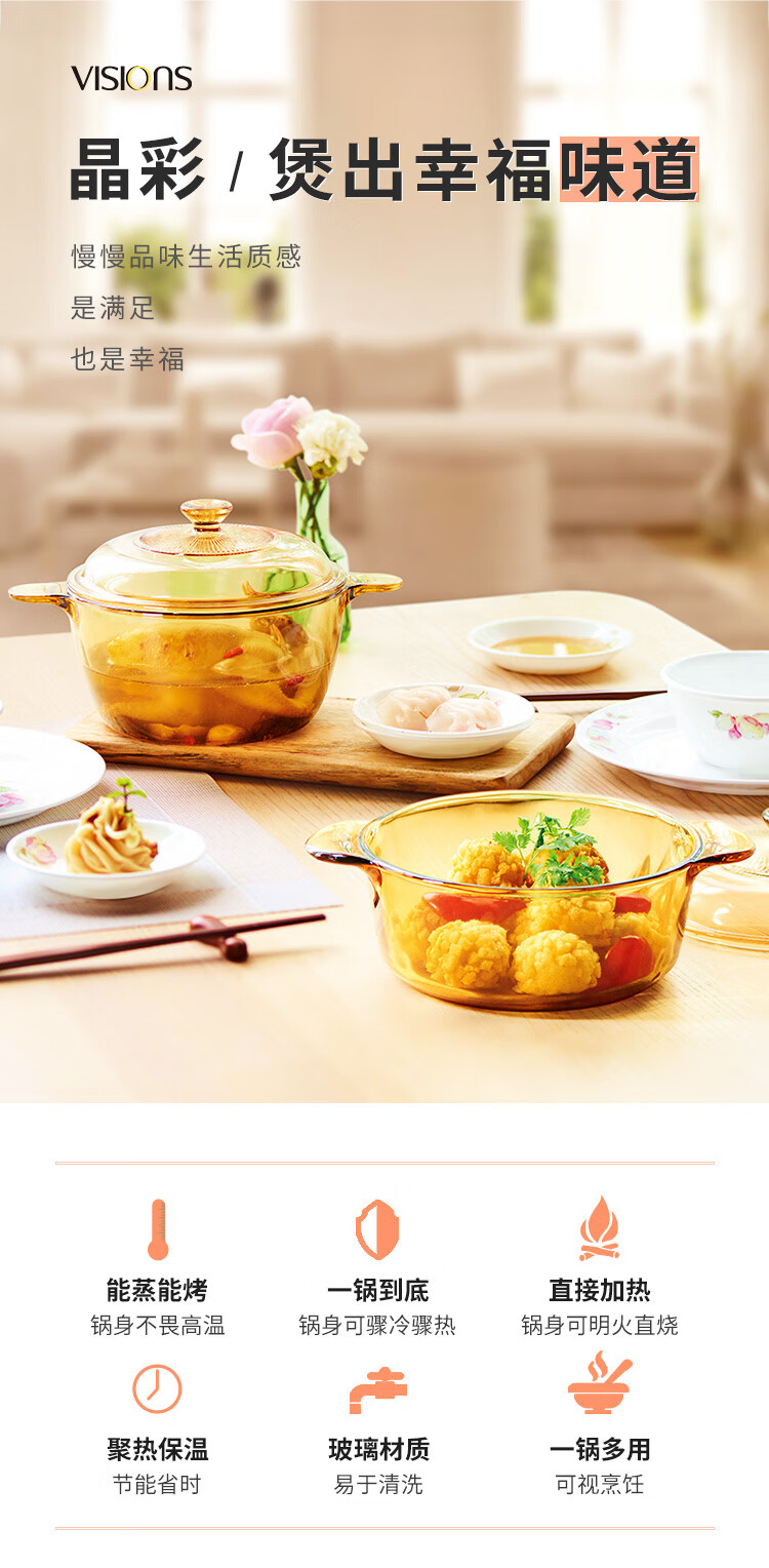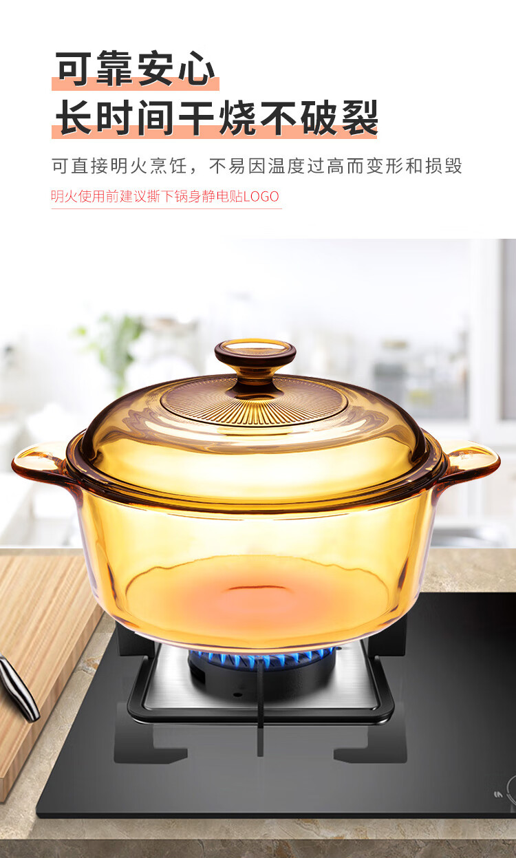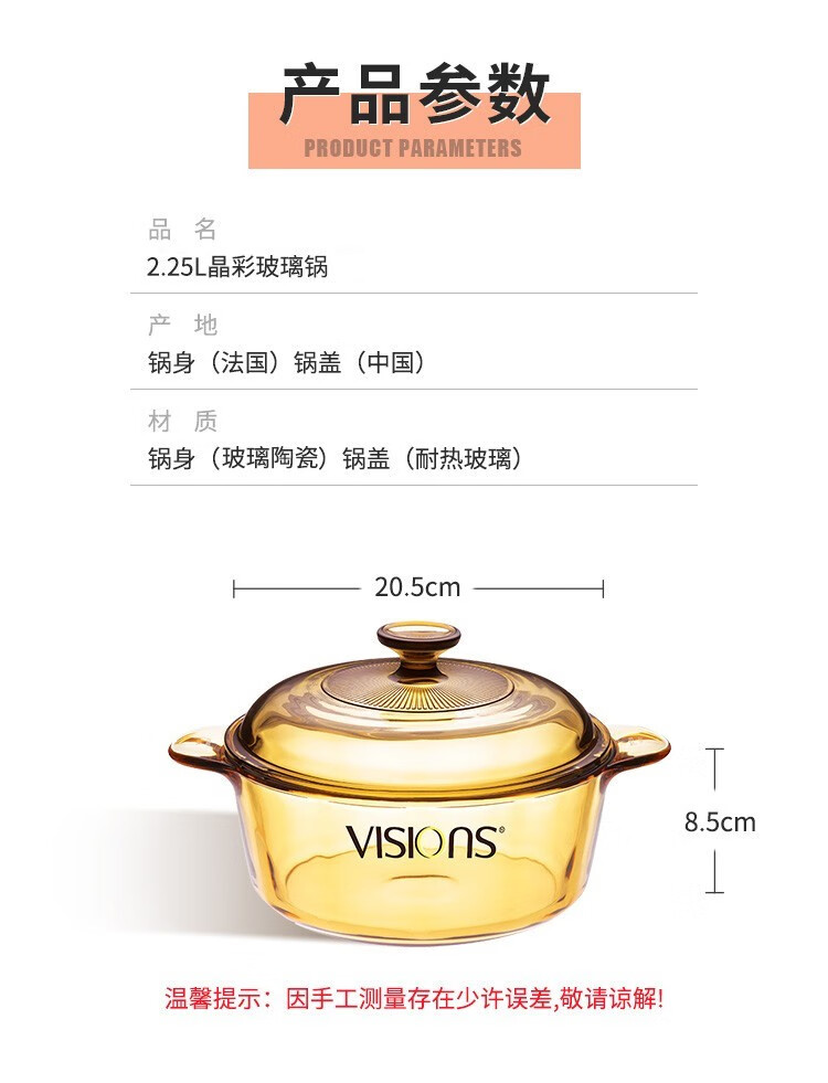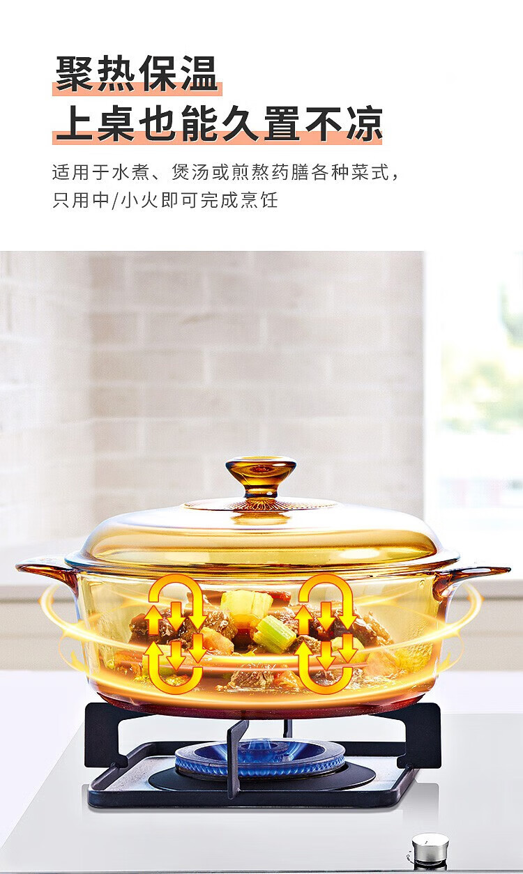 Corning (VISIONS) 2.25L crystal soup pot glass pot transparent pot amber pot stew pot cooking pot VS-22