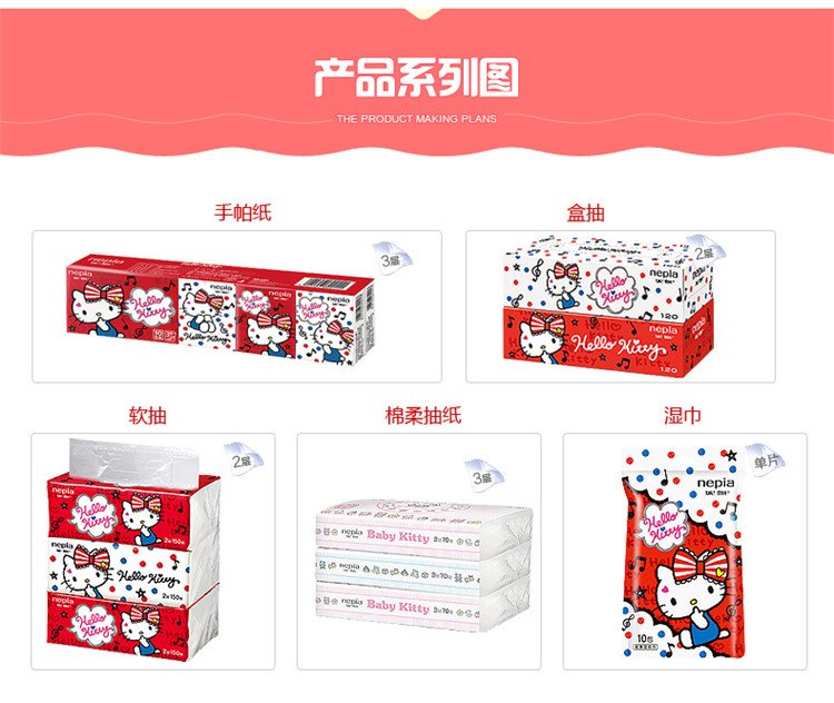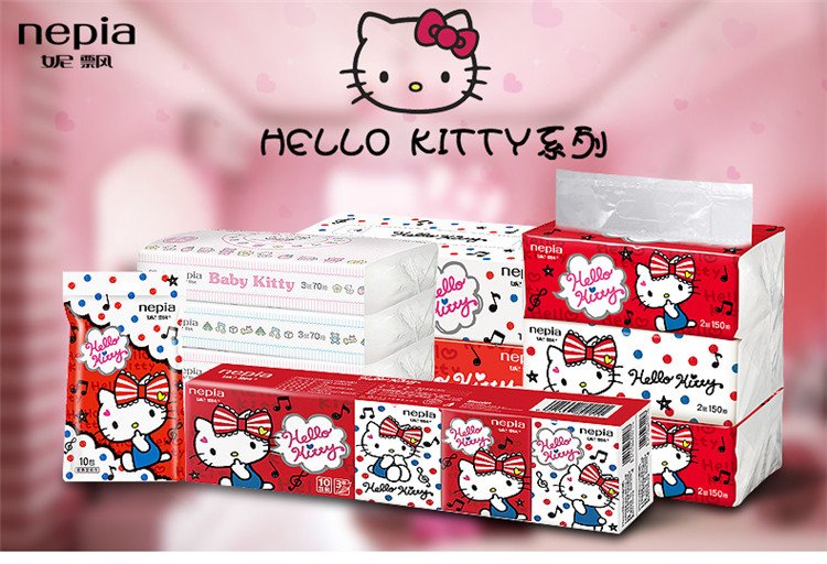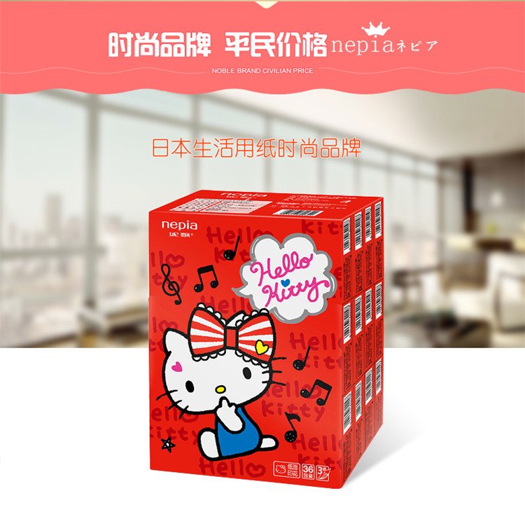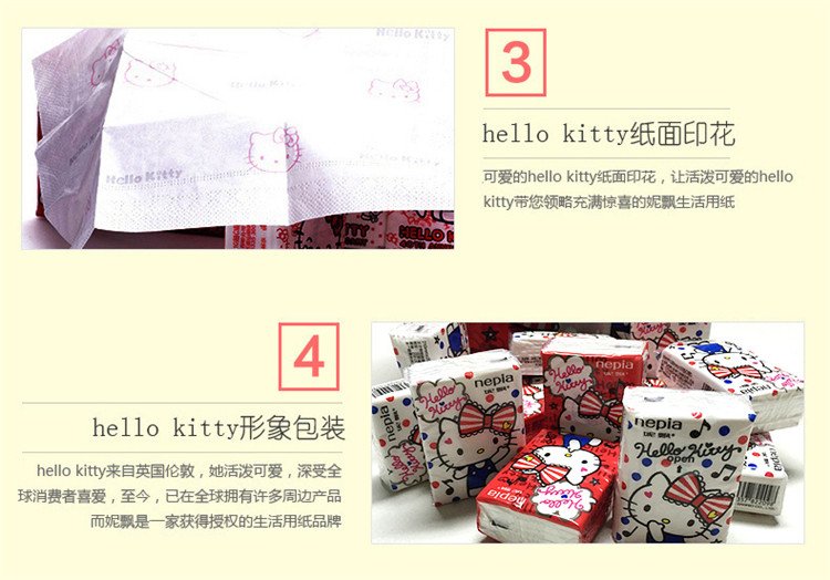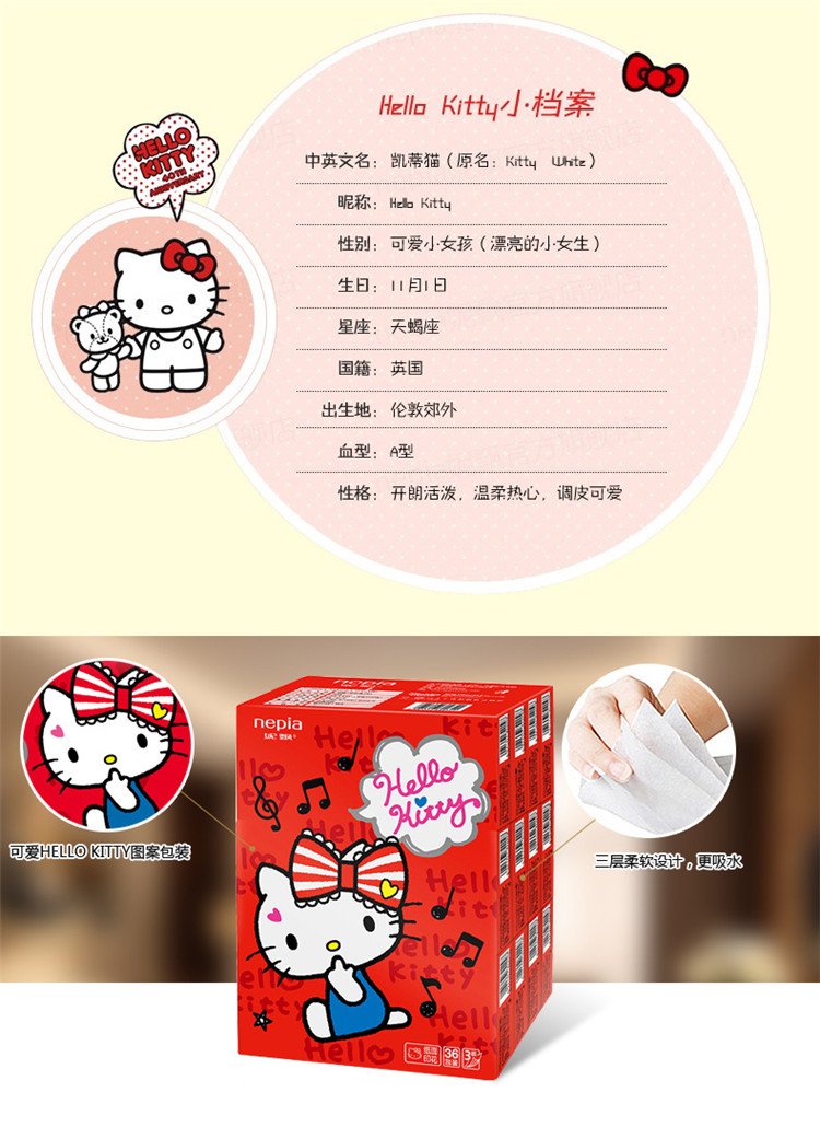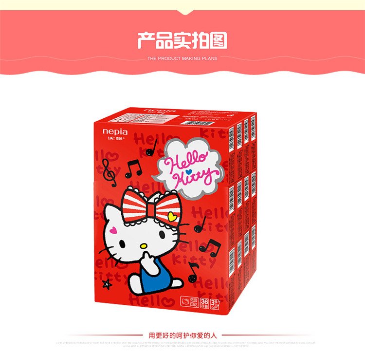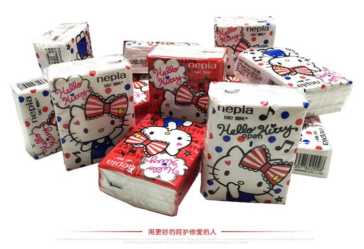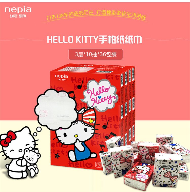 Nepia handkerchief paper 3 layers 10 draws*36 pack hello kitty cartoon unscented printed small pack tissue portable pack