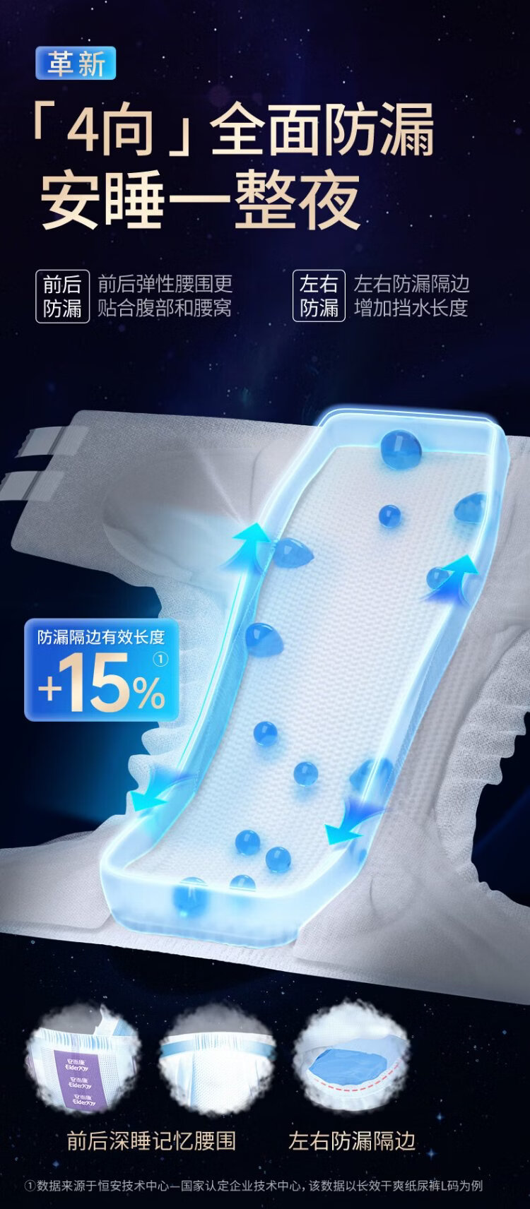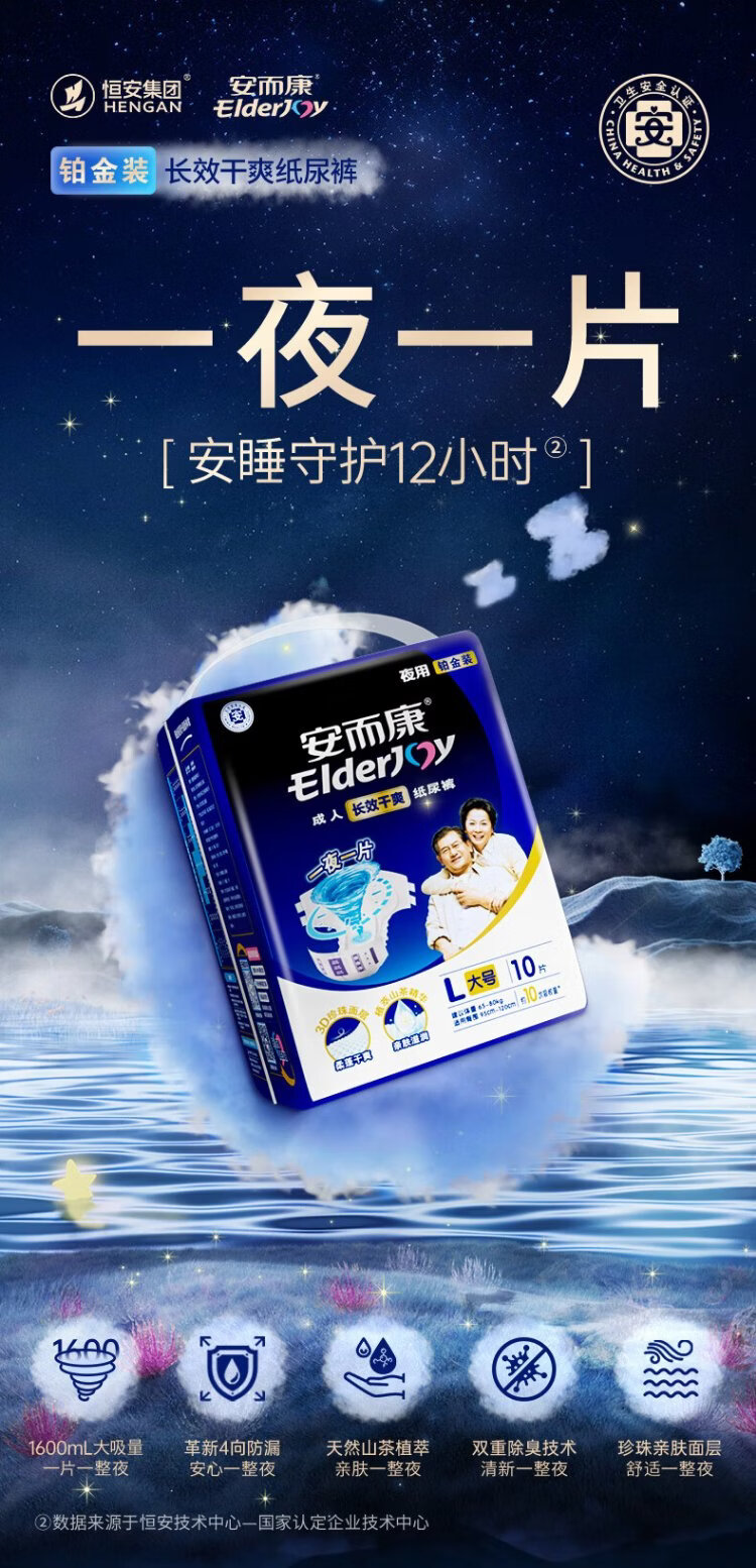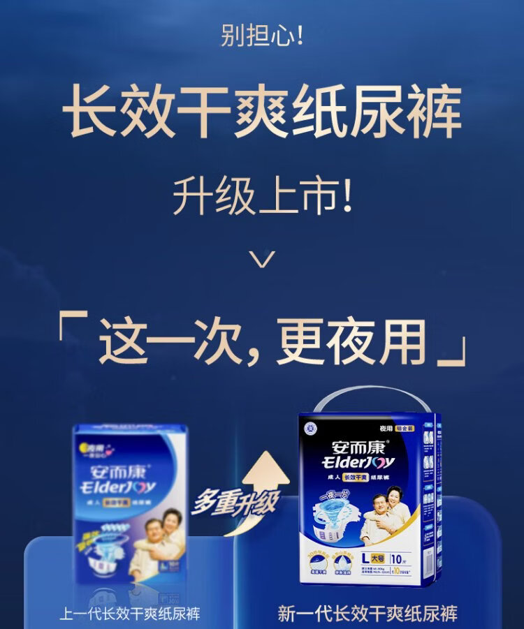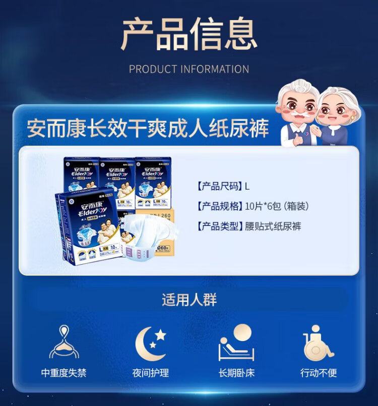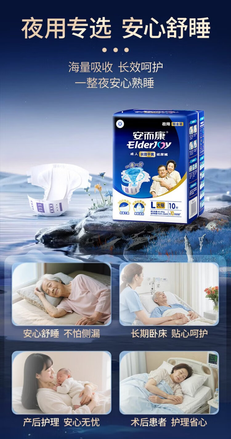 Elderjoy long-lasting dry adult diapers L60 pieces with hip circumference 95-120cm adult diapers for the elderly in bed at night