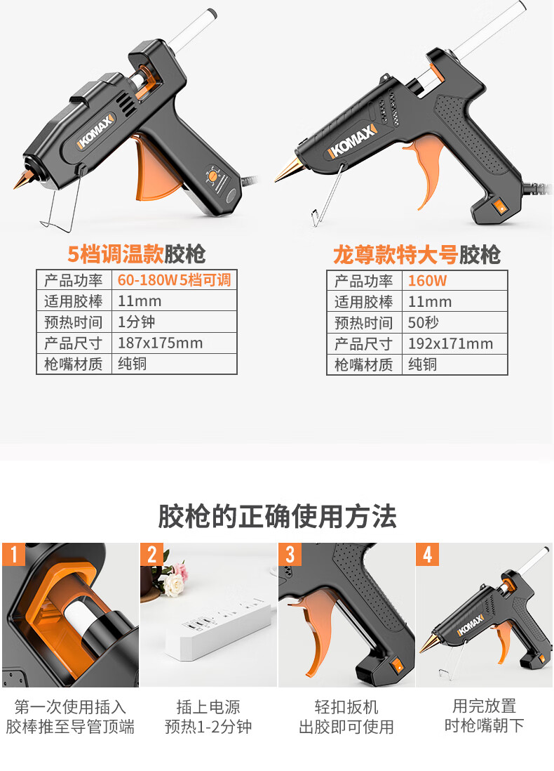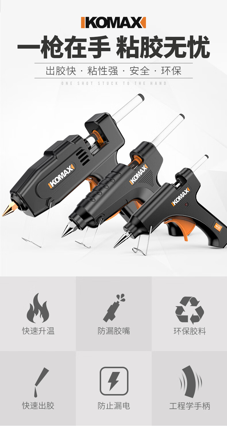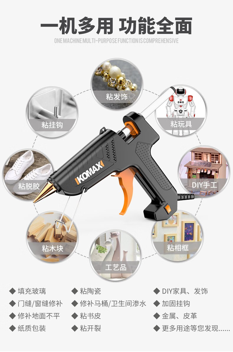 Komax hot melt glue gun, electric melt glue gun, glass glue gun, handmade household bonding artifact, high-viscosity strong glue stick, hot melt glue stick, anti-scalding glue nozzle, flagship large glue gun + 30 glue sticks