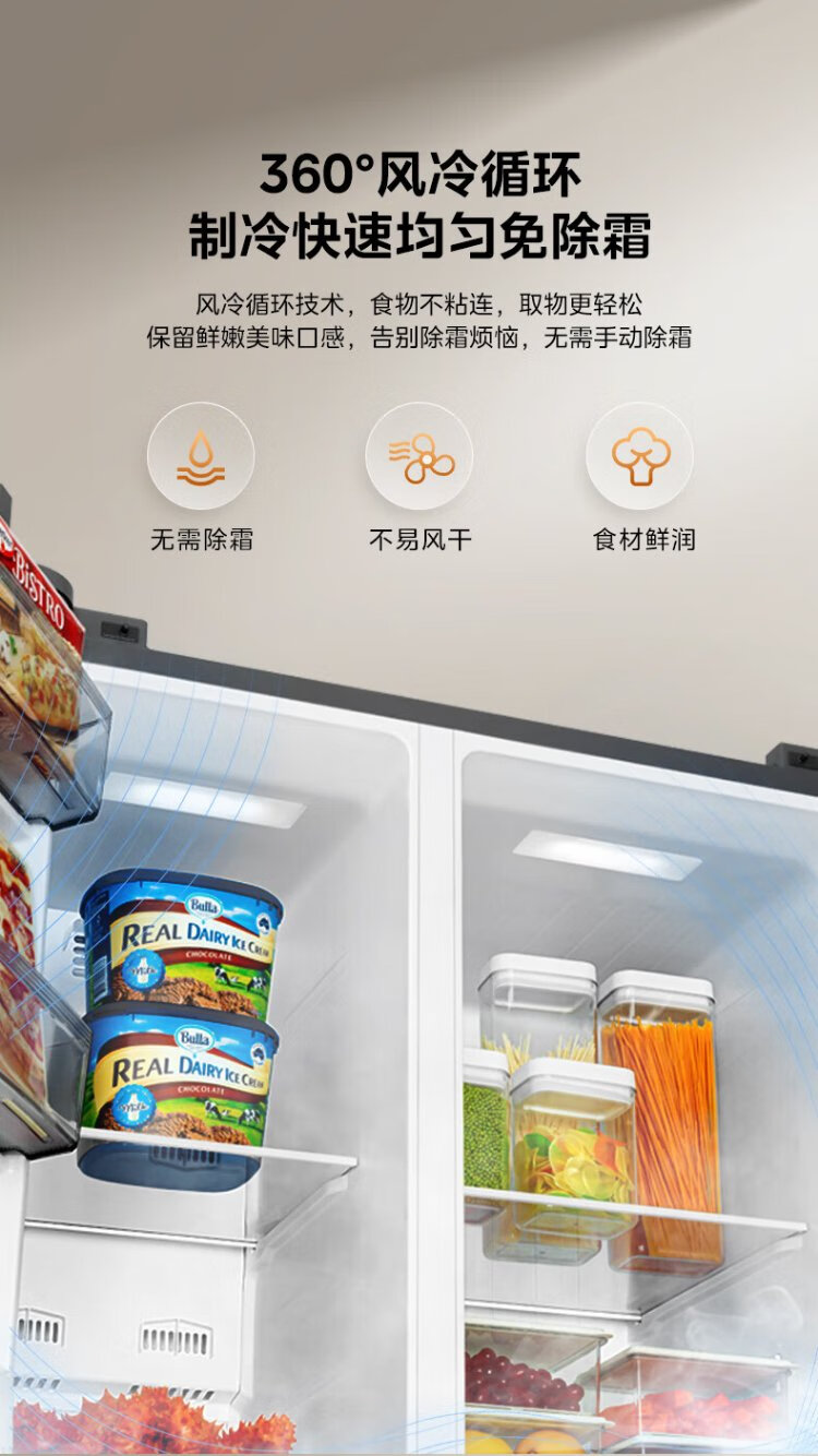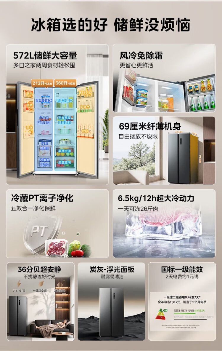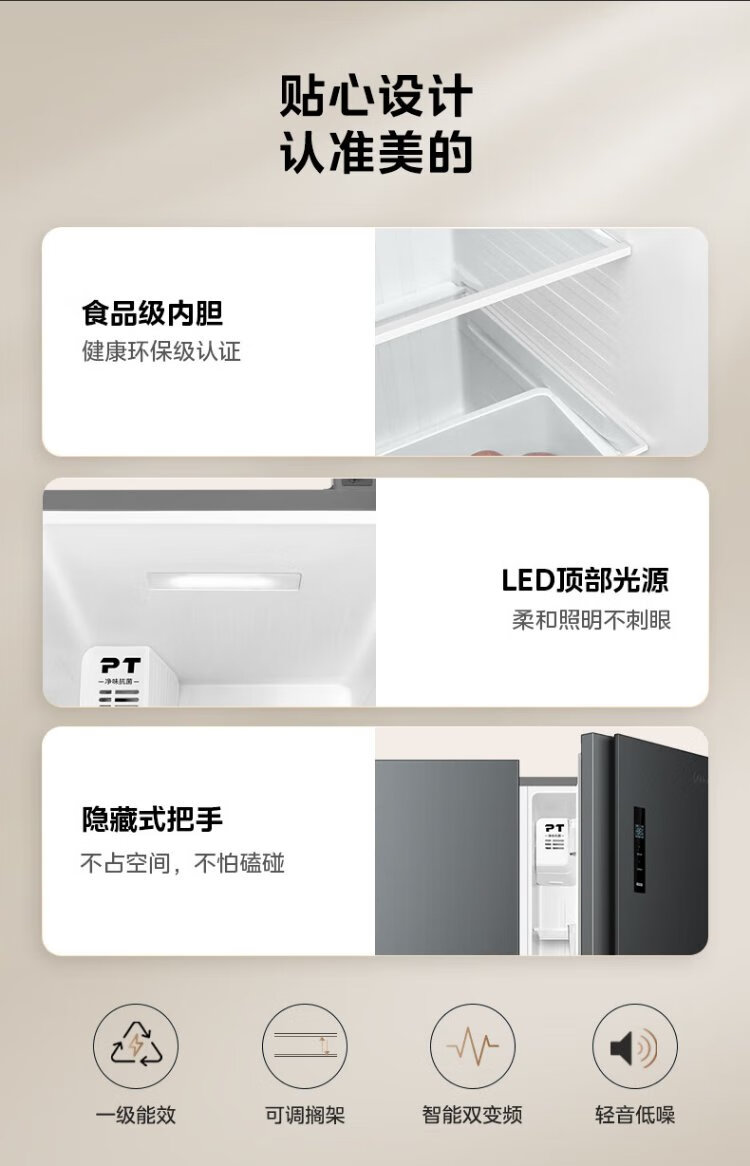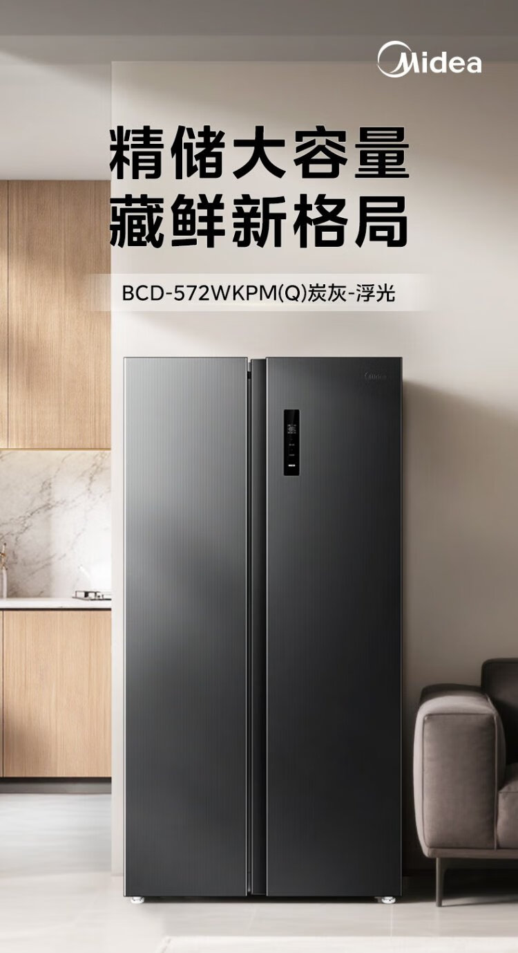 Midea refrigerator 569+ liters side-by-side door double door household first-class energy efficiency dual frequency conversion energy-saving air-cooled frost-free full space clean smell large capacity stocking refrigerator subsidy immediate discount 569+ liters