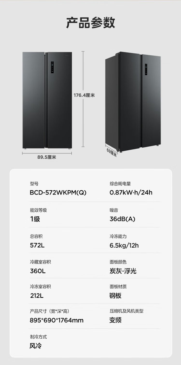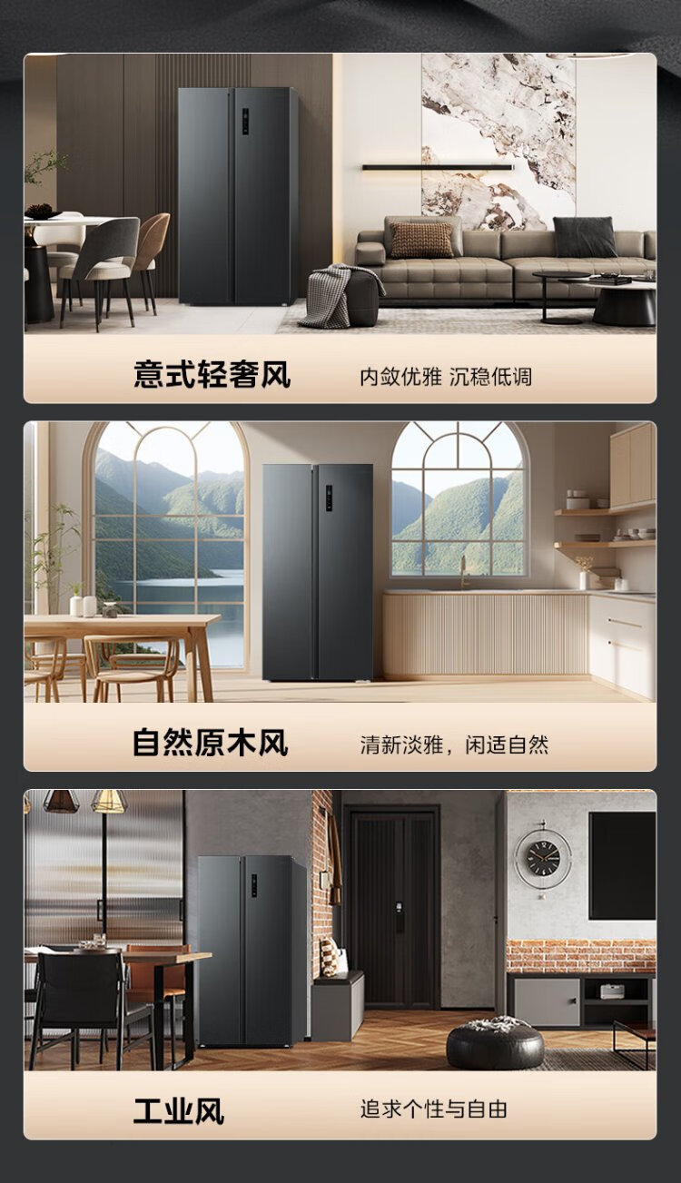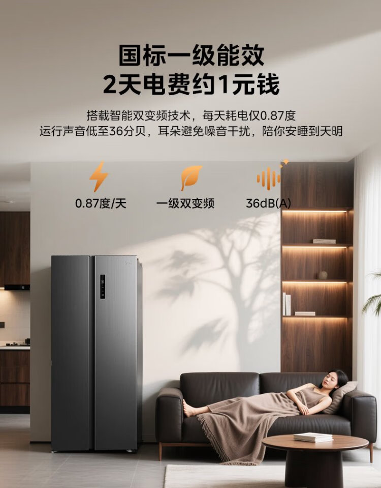 Midea refrigerator 569+ liters side-by-side door double door household first-class energy efficiency dual frequency conversion energy-saving air-cooled frost-free full space clean smell large capacity stocking refrigerator subsidy immediate discount 569+ liters