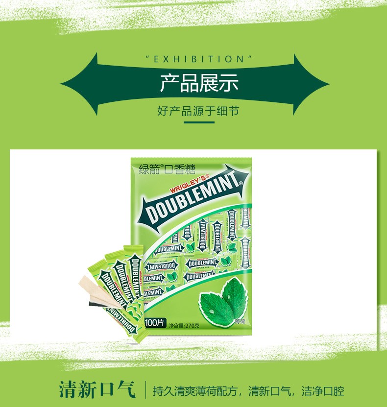 Green Arrow Original Mint Chewing Gum, about 100 pieces in a bag, to freshen your breath after a restaurant meal