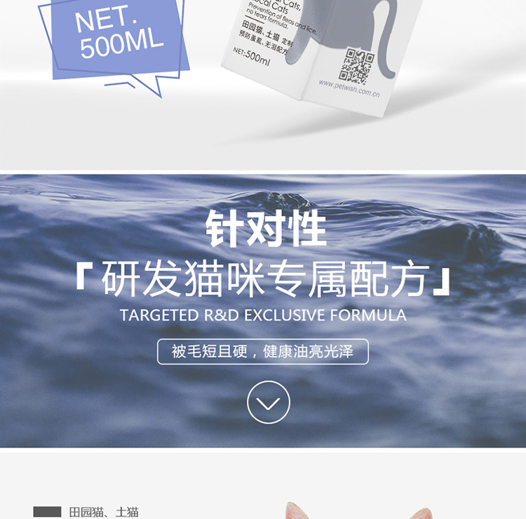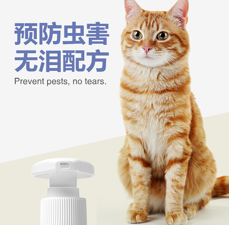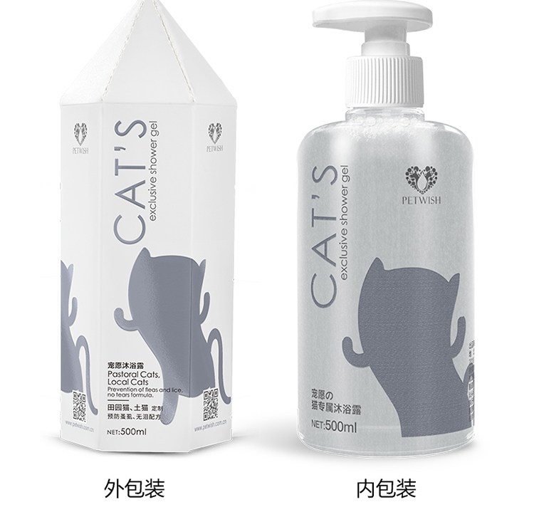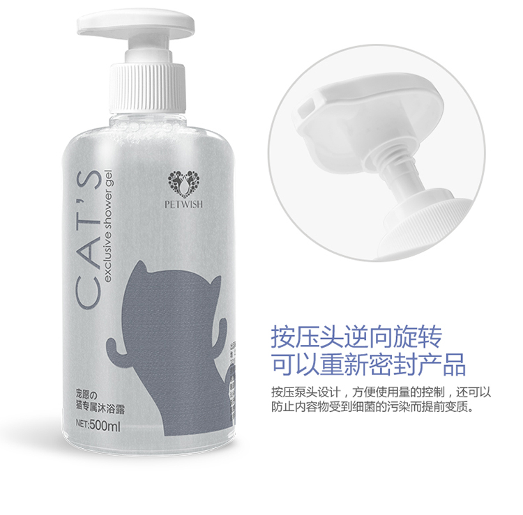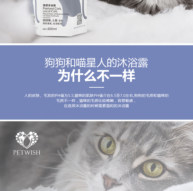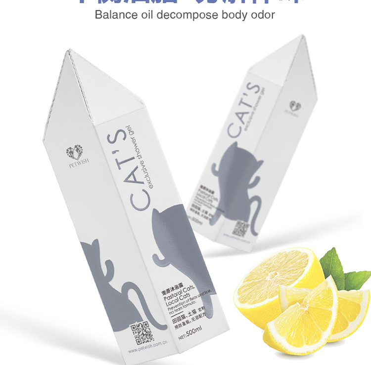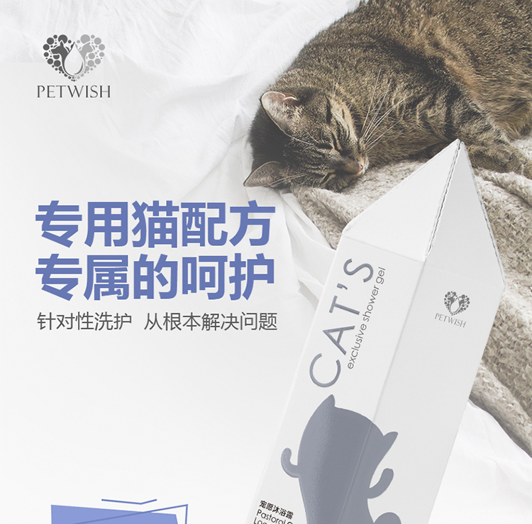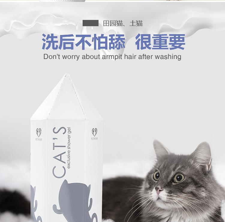 PETWISH Pastoral Cat Shower Gel, specially formulated for adult and young cats to remove mites, inhibit bacteria, eliminate fleas and lice, and tear-free formula cat bath