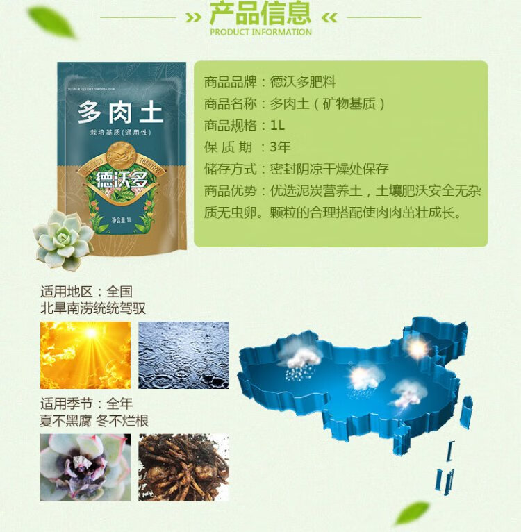 Devodoro succulent nutrient soil 1L special peat soil for succulent plant planting soil mixed with soil granular matrix flower pot soil