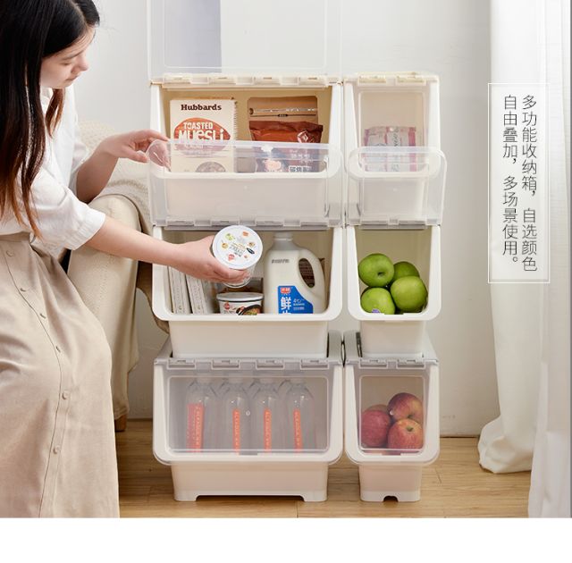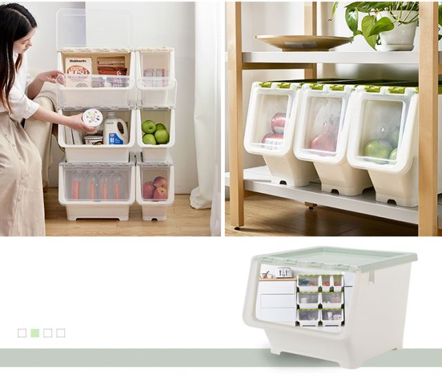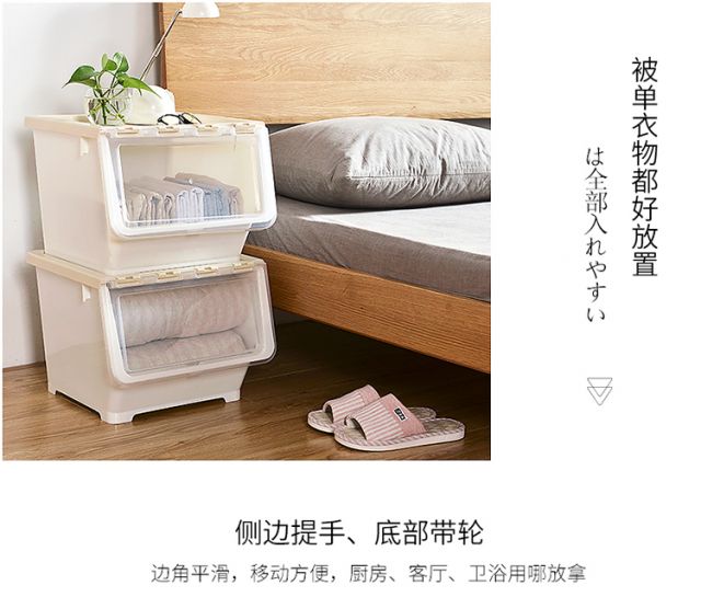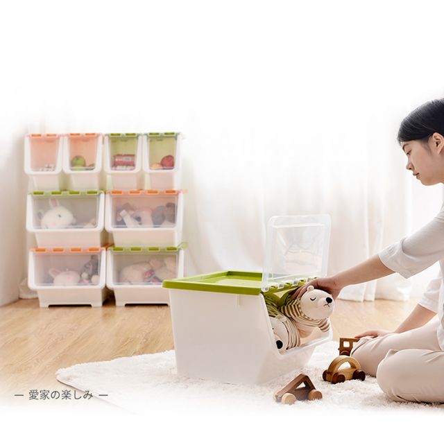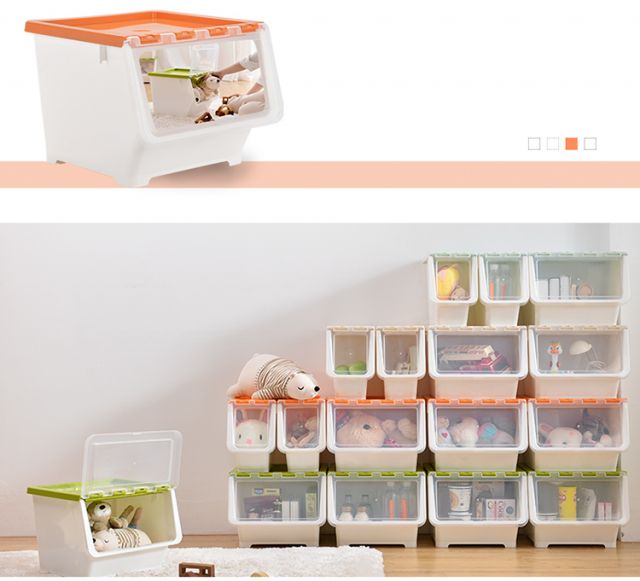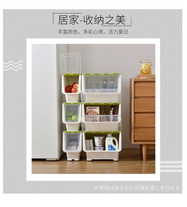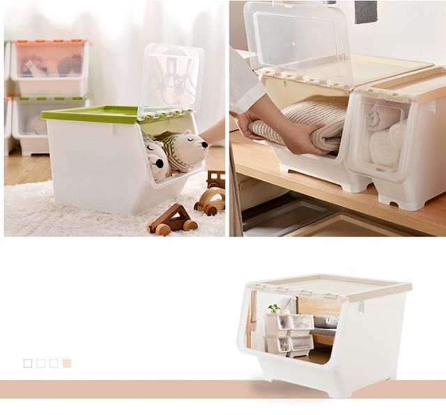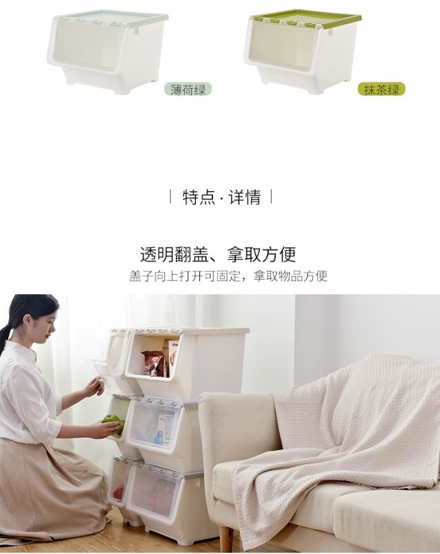 Bailu storage box with front side opening, children's snacks, toys, clothes storage box, plastic with lid, transparent flip-top storage box, mint green small size 3 pack