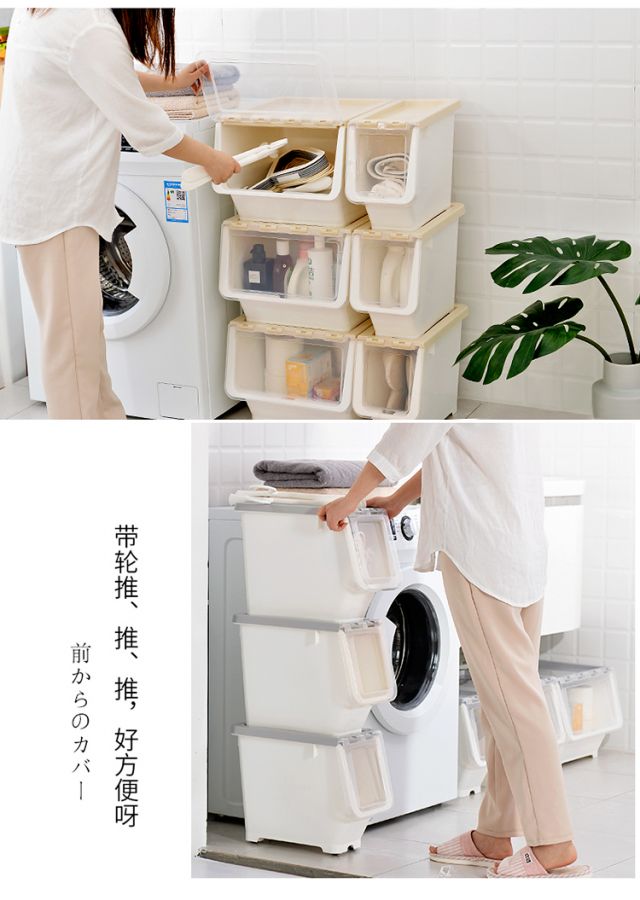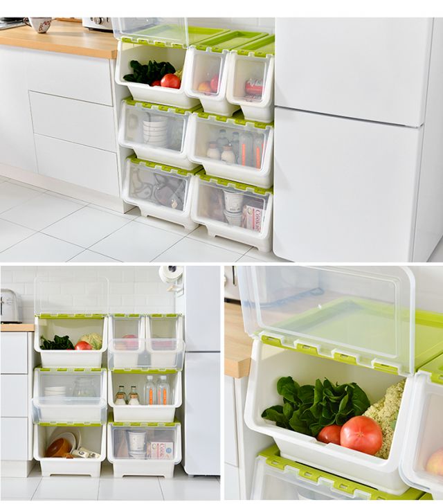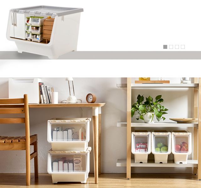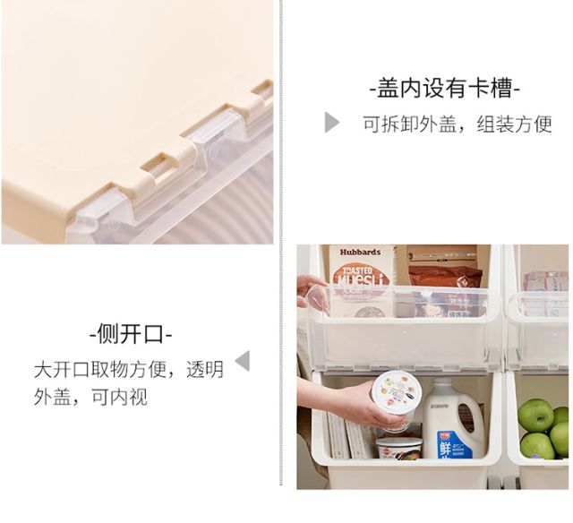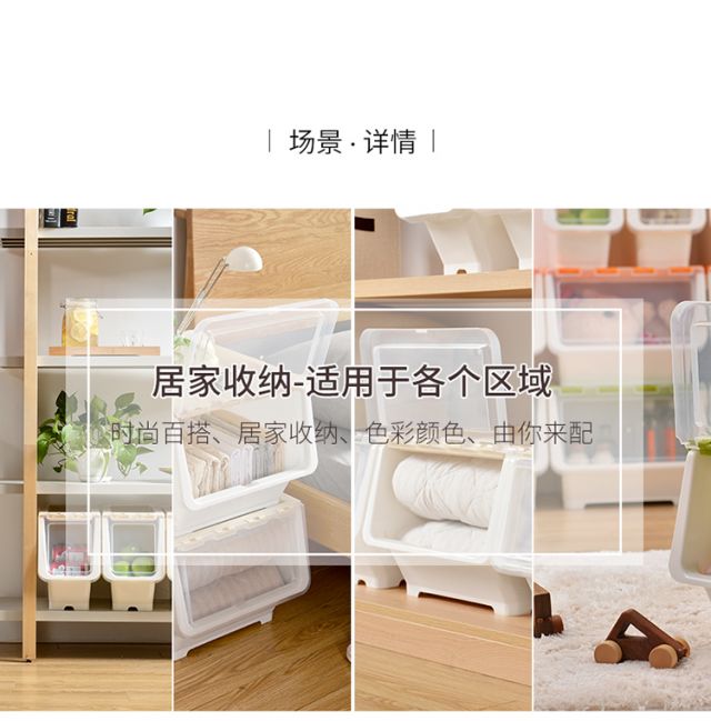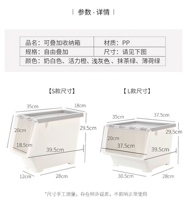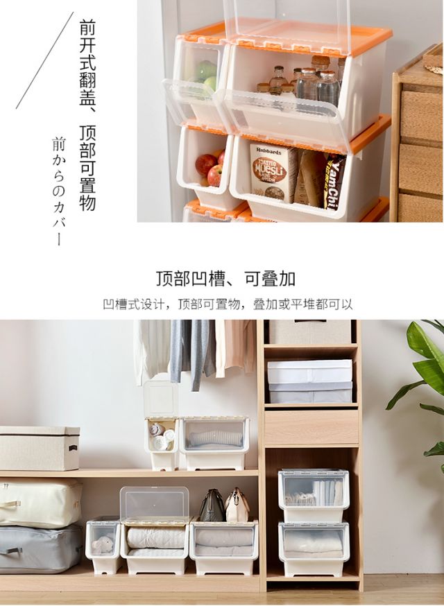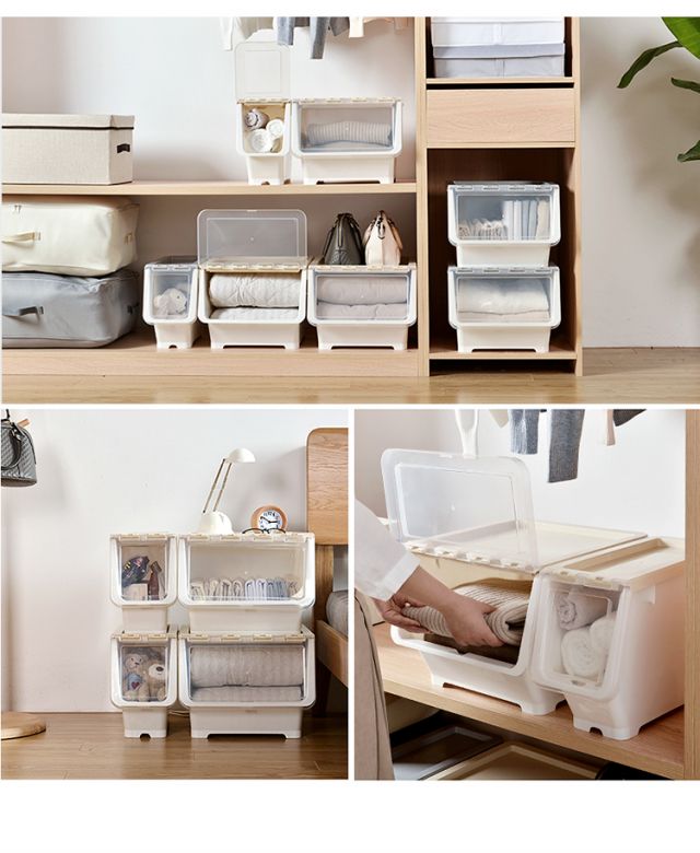 Bailu storage box with front side opening, children's snacks, toys, clothes storage box, plastic with lid, transparent flip-top storage box, mint green small size 3 pack