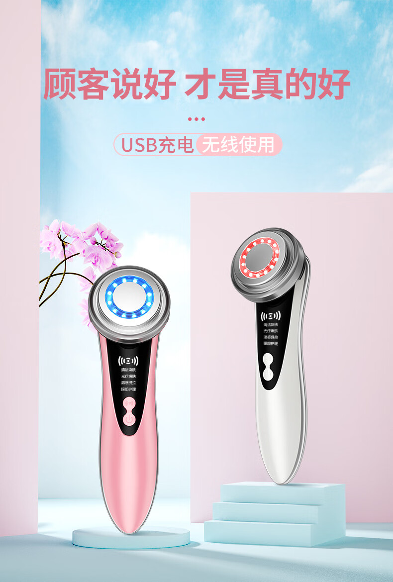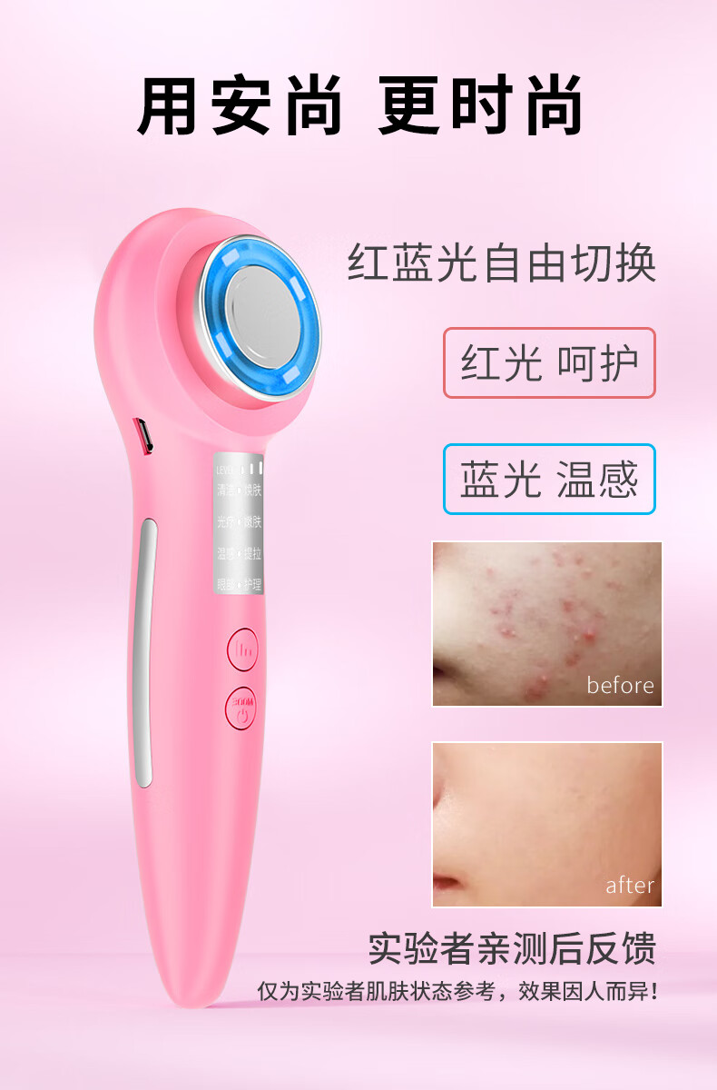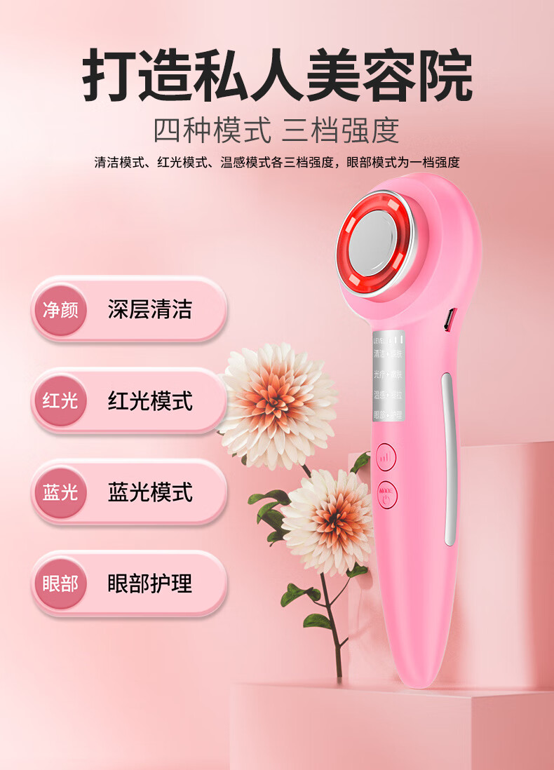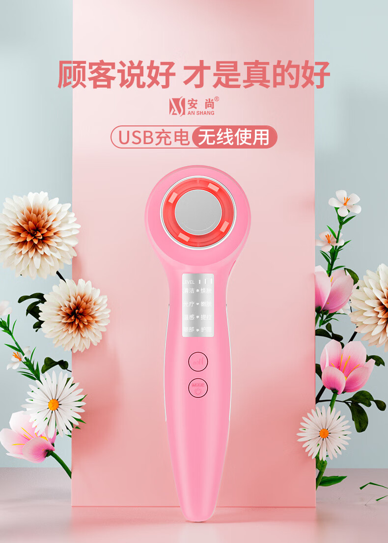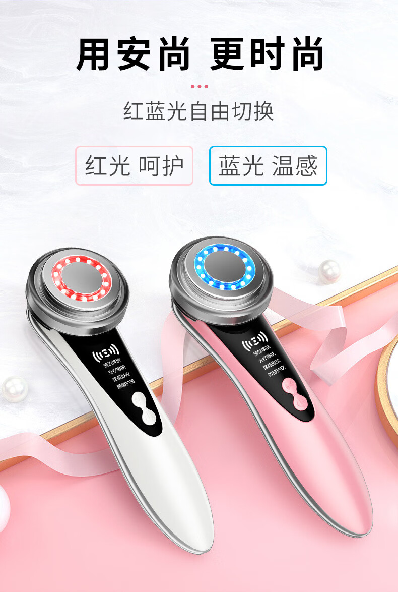 Anshang Anshang import instrument rechargeable beauty instrument temperature-sensing lifting electronic micro-current face and eye makeup remover red and blue light photon massage cleansing export radio frequency nasolabial fold artifact white vibration import and export 1 button battery