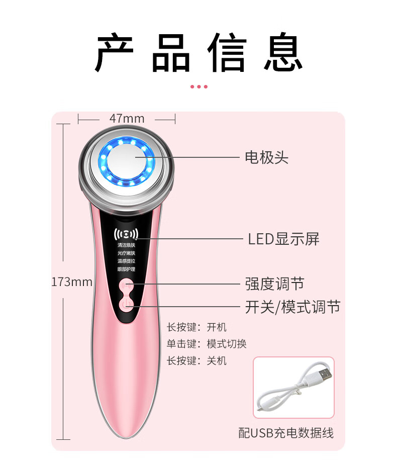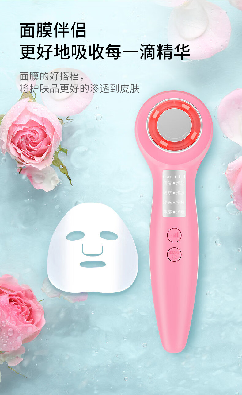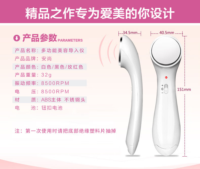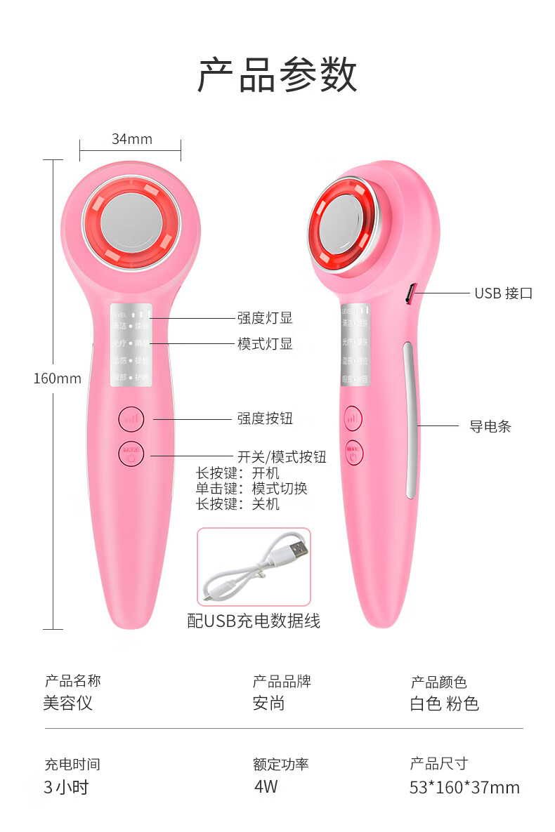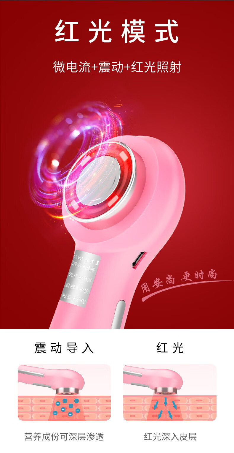 Anshang Anshang import instrument rechargeable beauty instrument temperature-sensing lifting electronic micro-current face and eye makeup remover red and blue light photon massage cleansing export radio frequency nasolabial fold artifact white vibration import and export 1 button battery