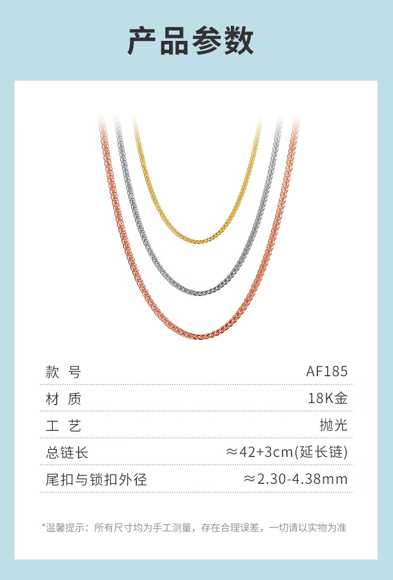 Xie Ruilin (TSL) 18k gold necklace women's plain chain platinum rose gold color gold Chopard clavicle chain AF185 K red