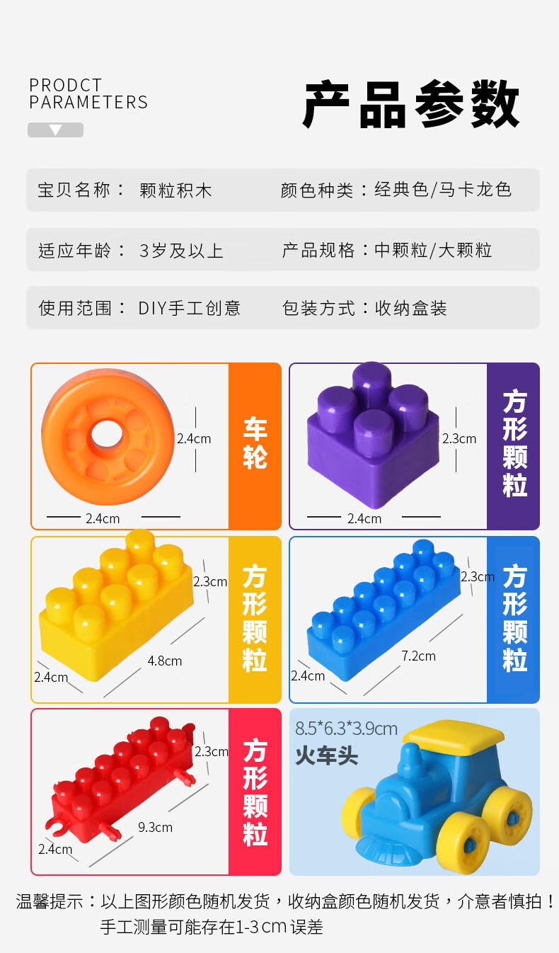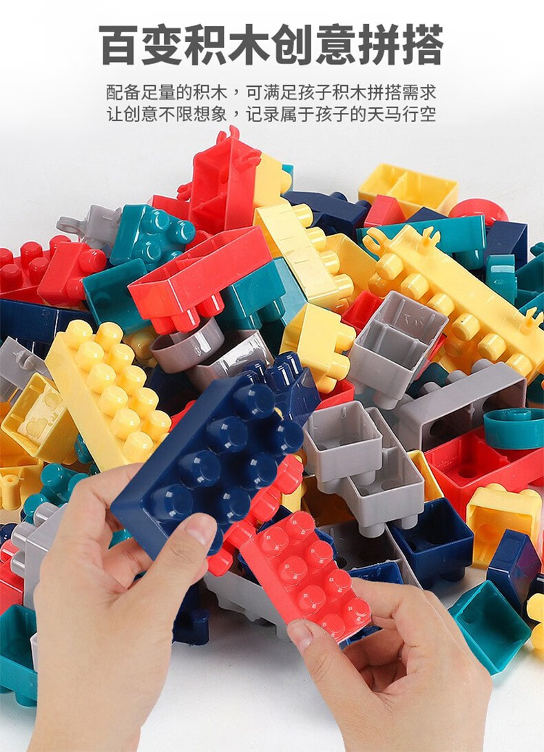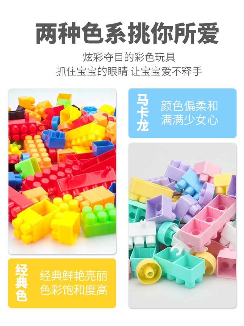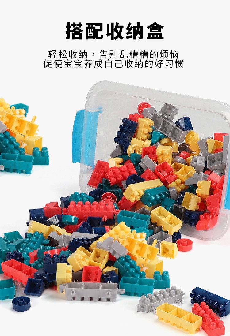 Aiful children's plastic baby building blocks assembled and inserted intellectual toys for boys and girls 3-6 years old Children's Day gift classic color 205 large particles storage box