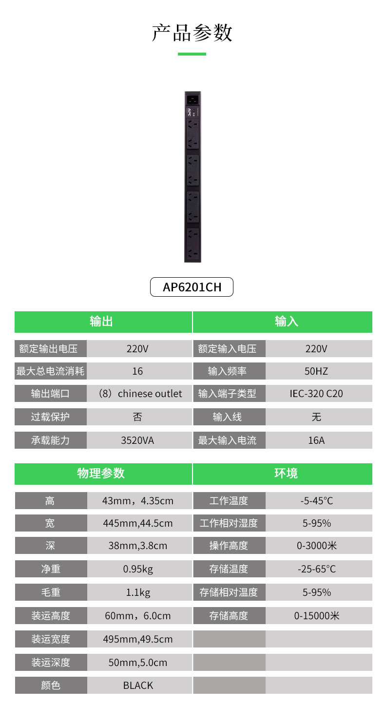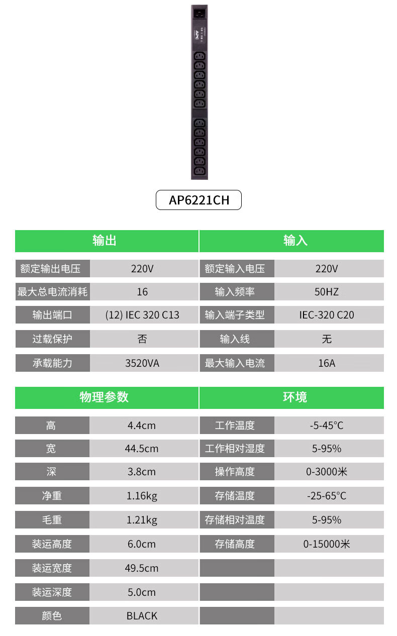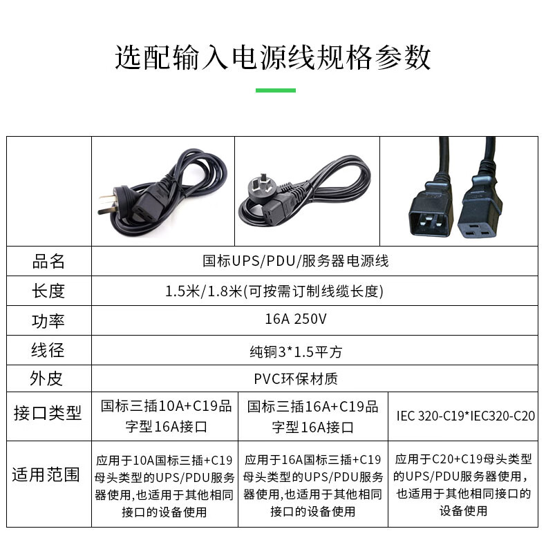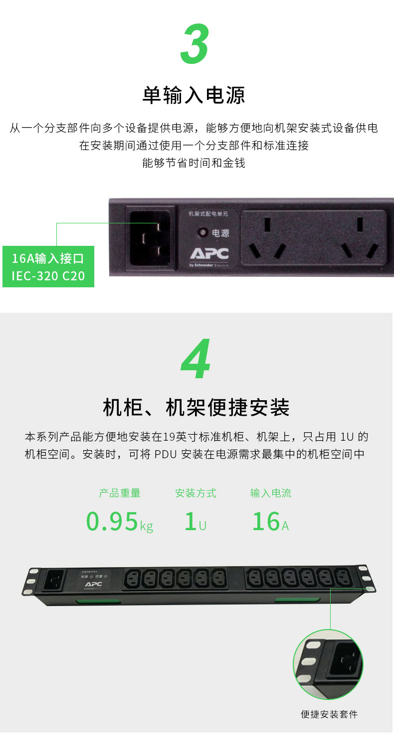 APC 施耐德 机架式PDU  基本型  机柜专用 PDU配套配件 PDU/UPS输出电源线10A C13-C14