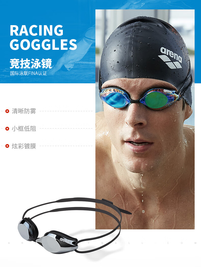 Arena (arena) Arena swimming goggles, coated for men and women, waterproof and anti-fog, professional, imported from Japan, universal for swimming adults and teenagers, flat coating PKBK, imported from Japan, racing small frame, universal for adults and children