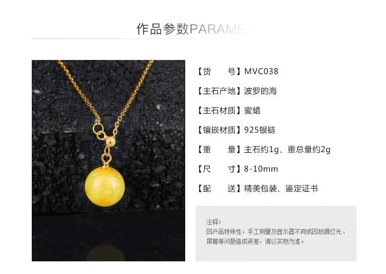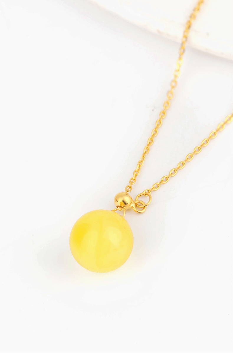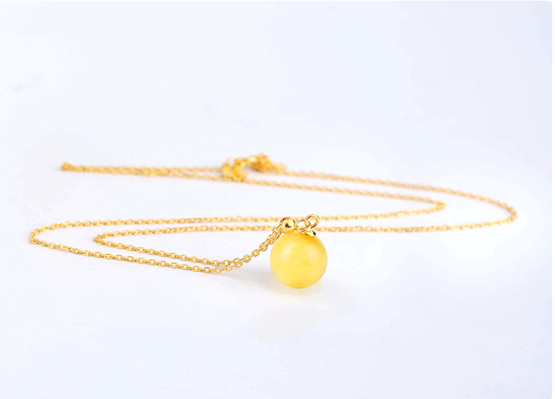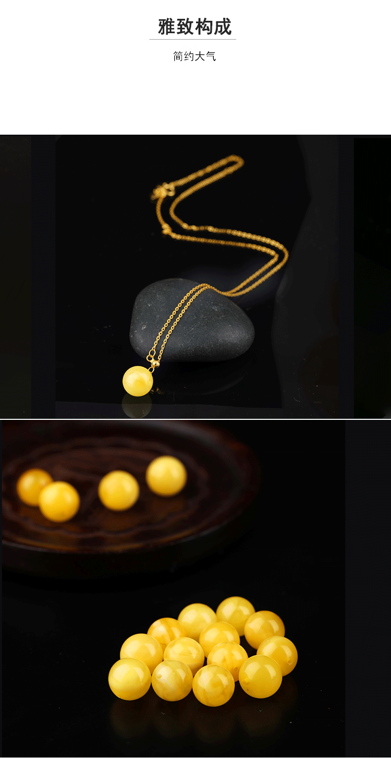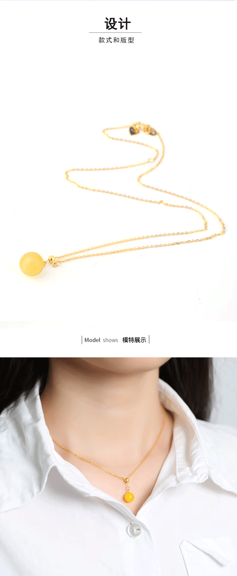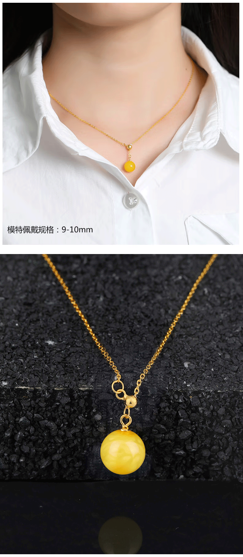 MUJUE beeswax pendant pearl chicken oil yellow honey amber round bead clavicle chain women's necklace