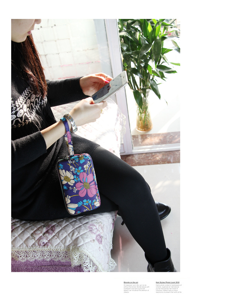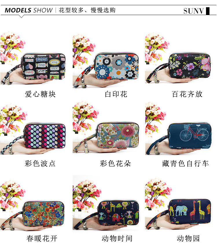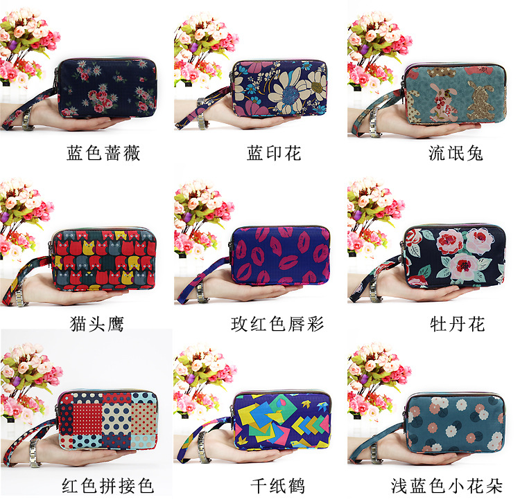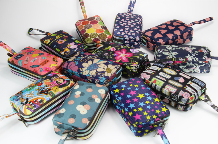 SHU GUO ER Clutch Fabric Long Women's Wallet Canvas Three-Layer Zipper Coin Purse Bicycle #C221