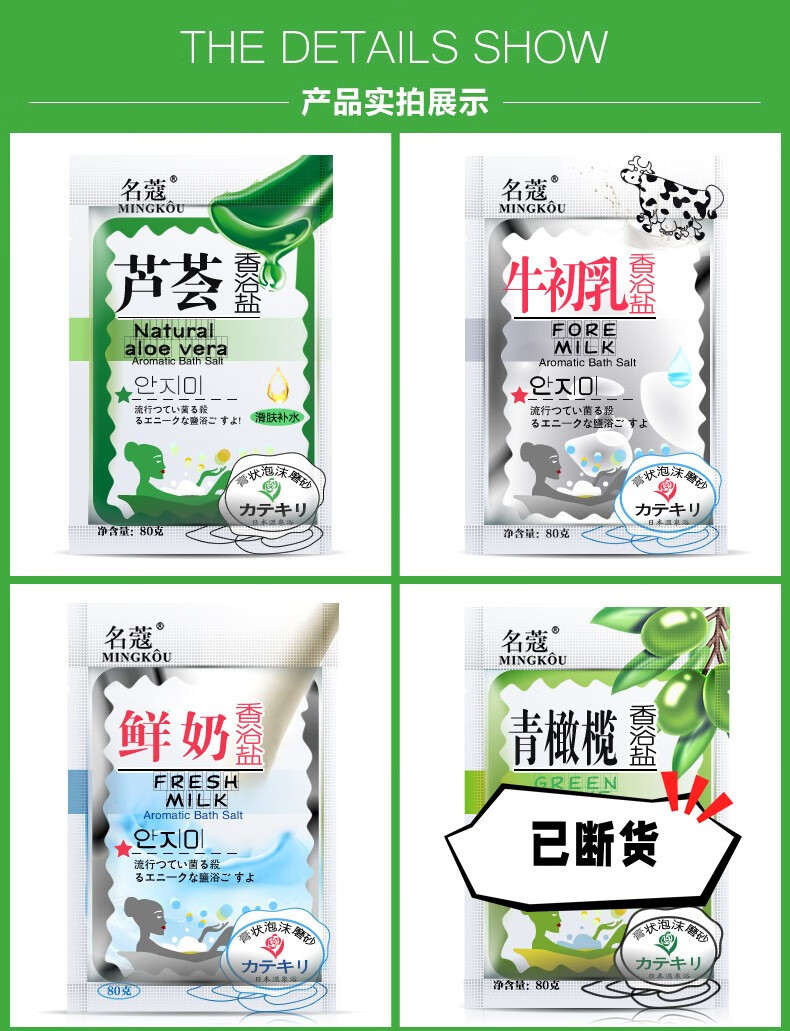 MINGKOU Fresh Milk Rose Aloe Vera Colostrum Bag Fragrance Bath Salt Can Replace Shower Gel Moisturizing Sea Salt Scrub Skin 80g 30 Bags (4 Random Flavors)