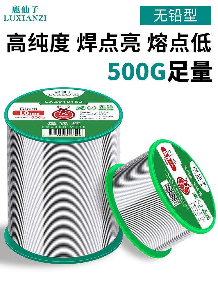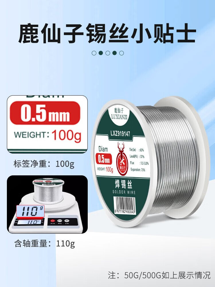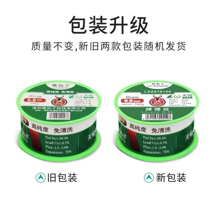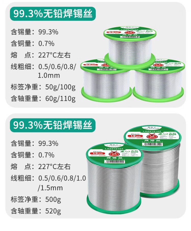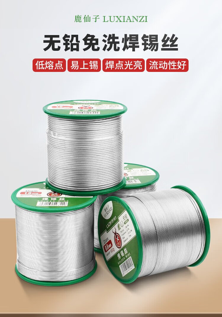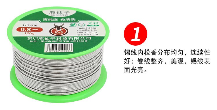 Luxianzi lead-free environmentally friendly solder wire high-purity household no-clean containing rosin core electric soldering iron low-temperature solder wire sufficient quantity 50G 0.8MM lead-free tin wire