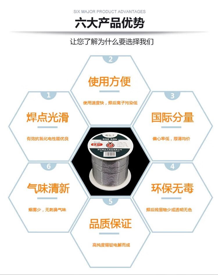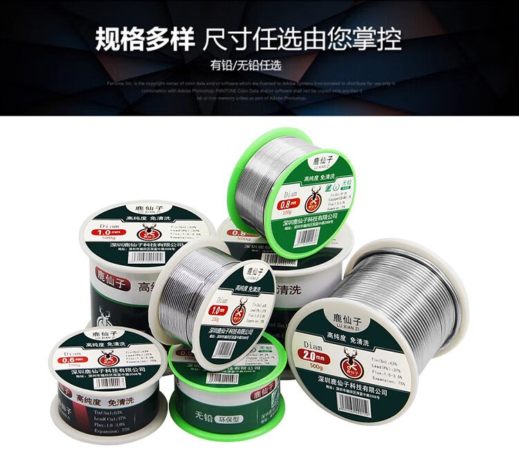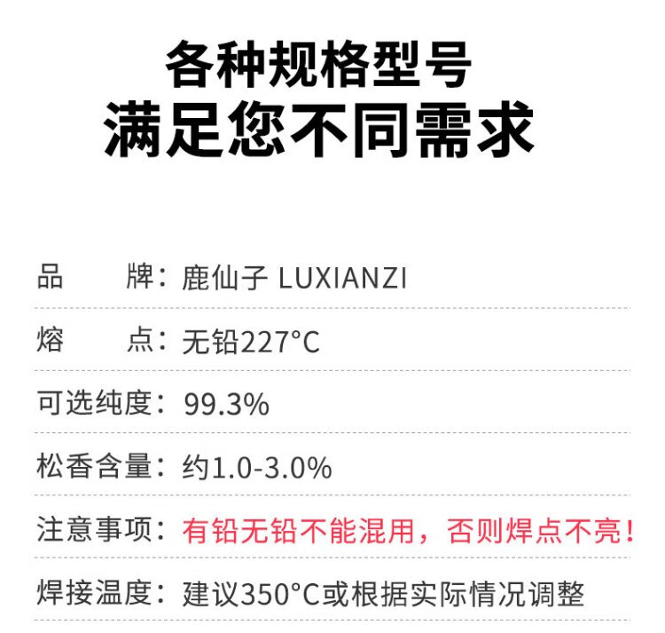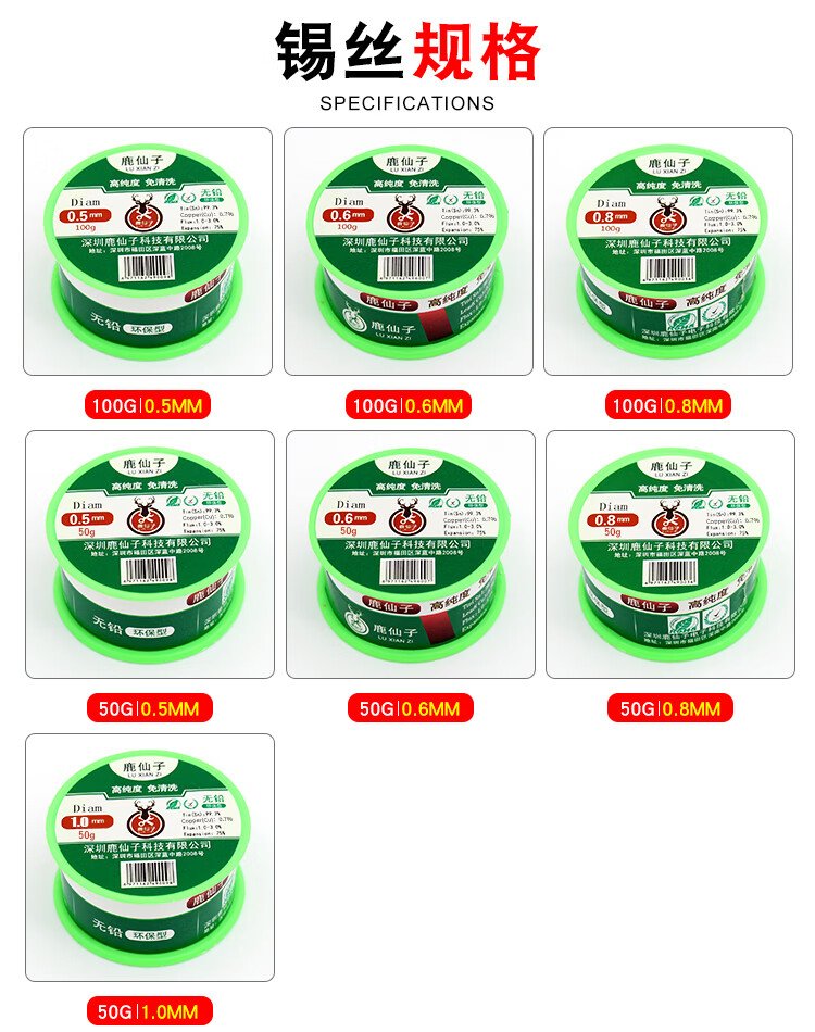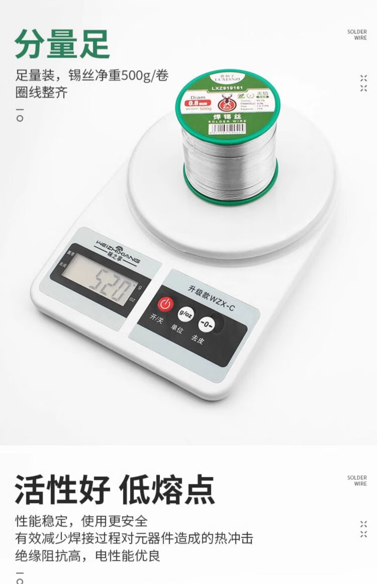 Luxianzi lead-free environmentally friendly solder wire high-purity household no-clean containing rosin core electric soldering iron low-temperature solder wire sufficient quantity 50G 0.8MM lead-free tin wire