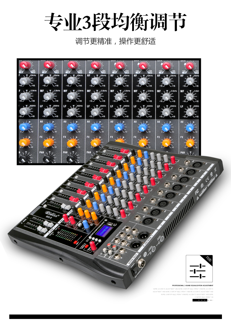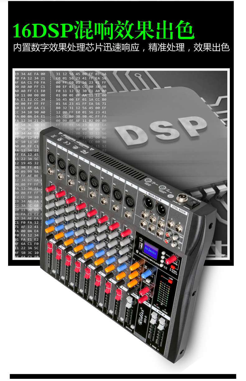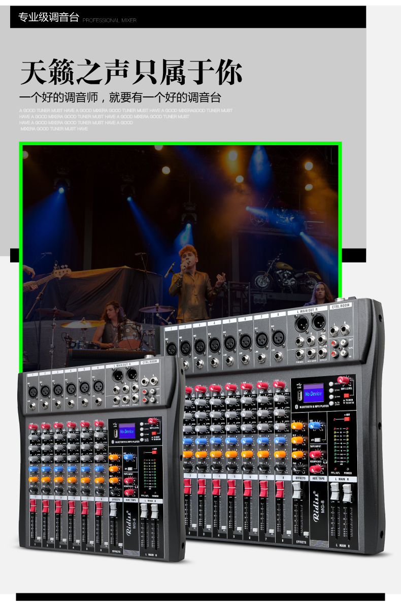 Ridiss MG professional mixer 6-channel 8-channel 12-channel 16-channel KTV stage performance recording wedding conference USB Bluetooth reverberation effect equalization equipment MG-6 (free XLR cable 2, adapter 2, computer cable)