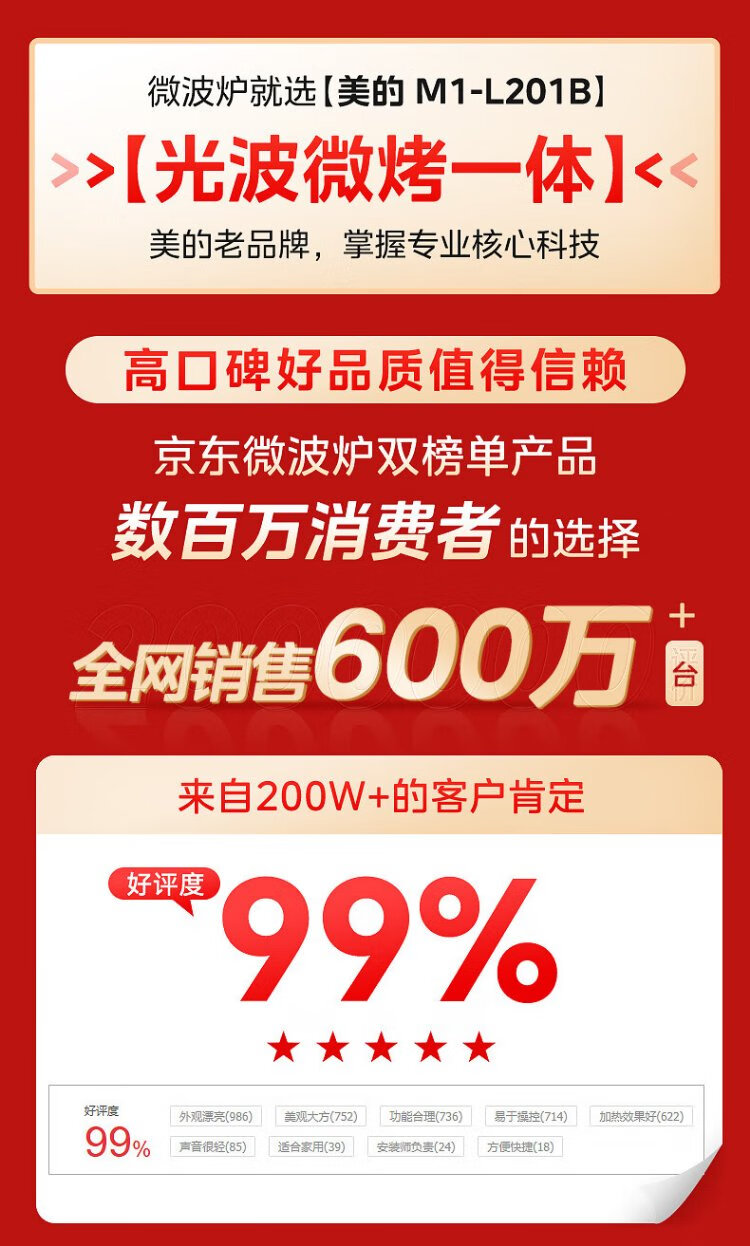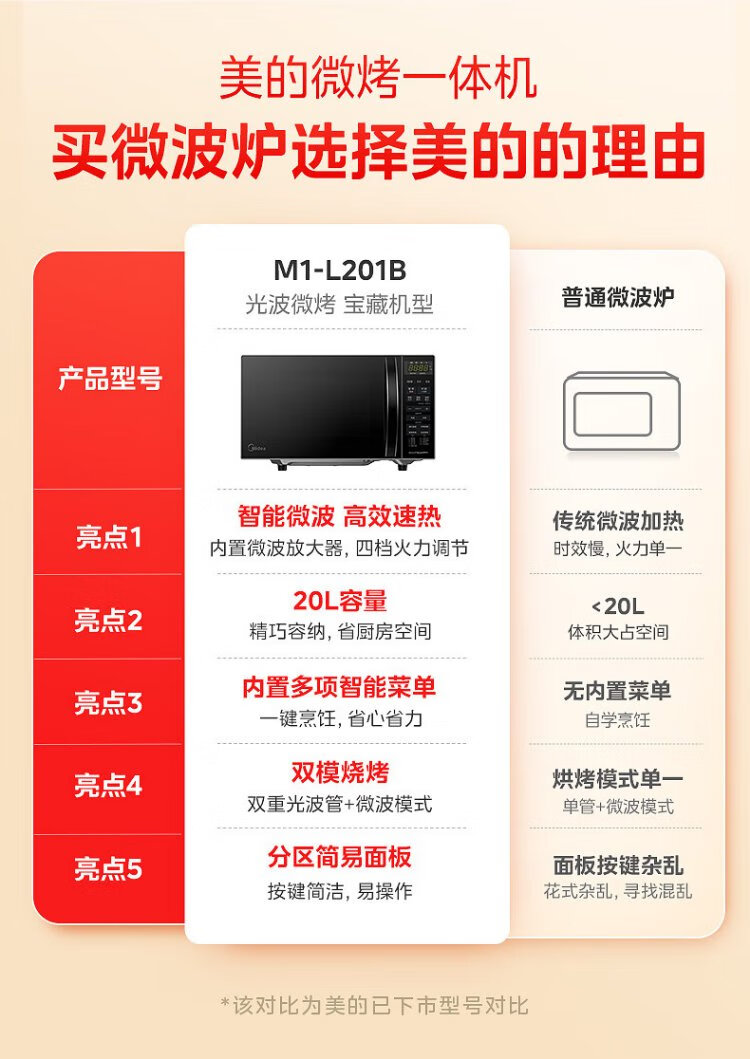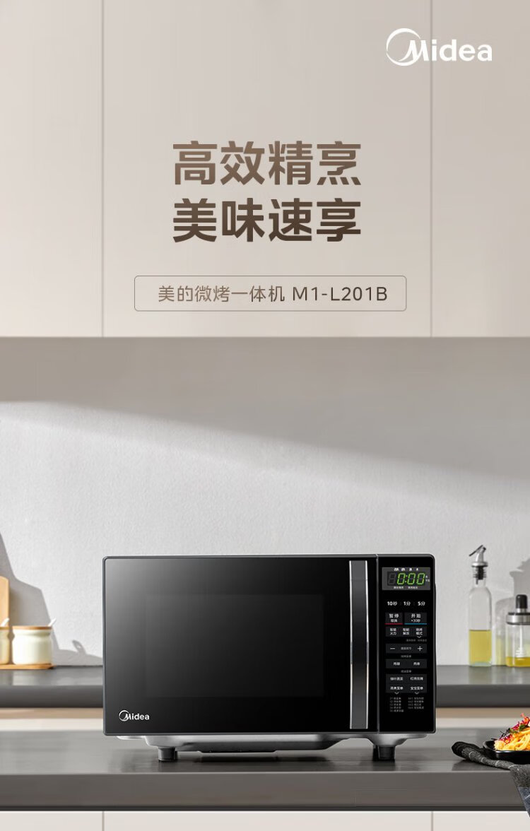 Midea microwave oven all-in-one small household 20-liter microwave oven light wave heating diamond back plate (M1-L201B)