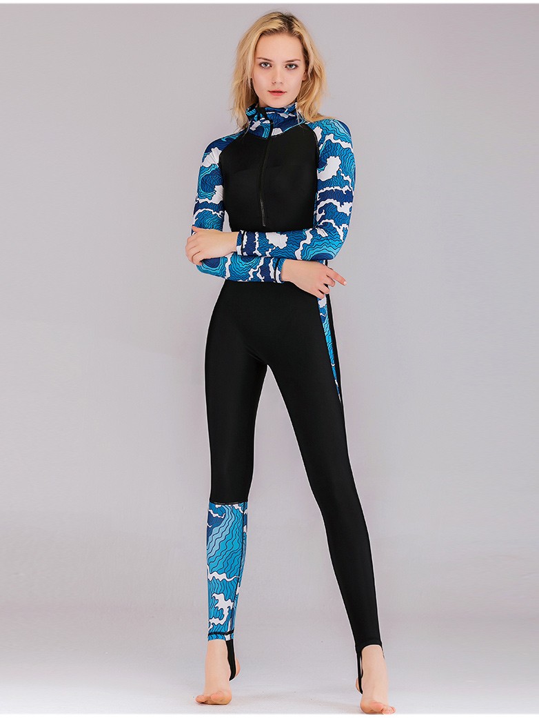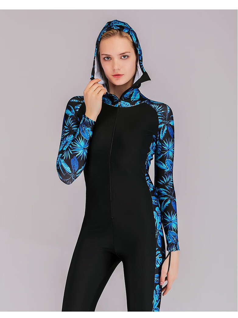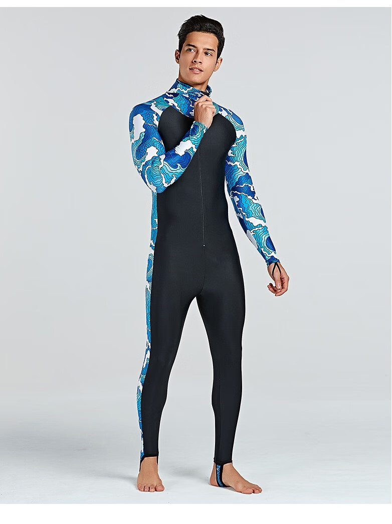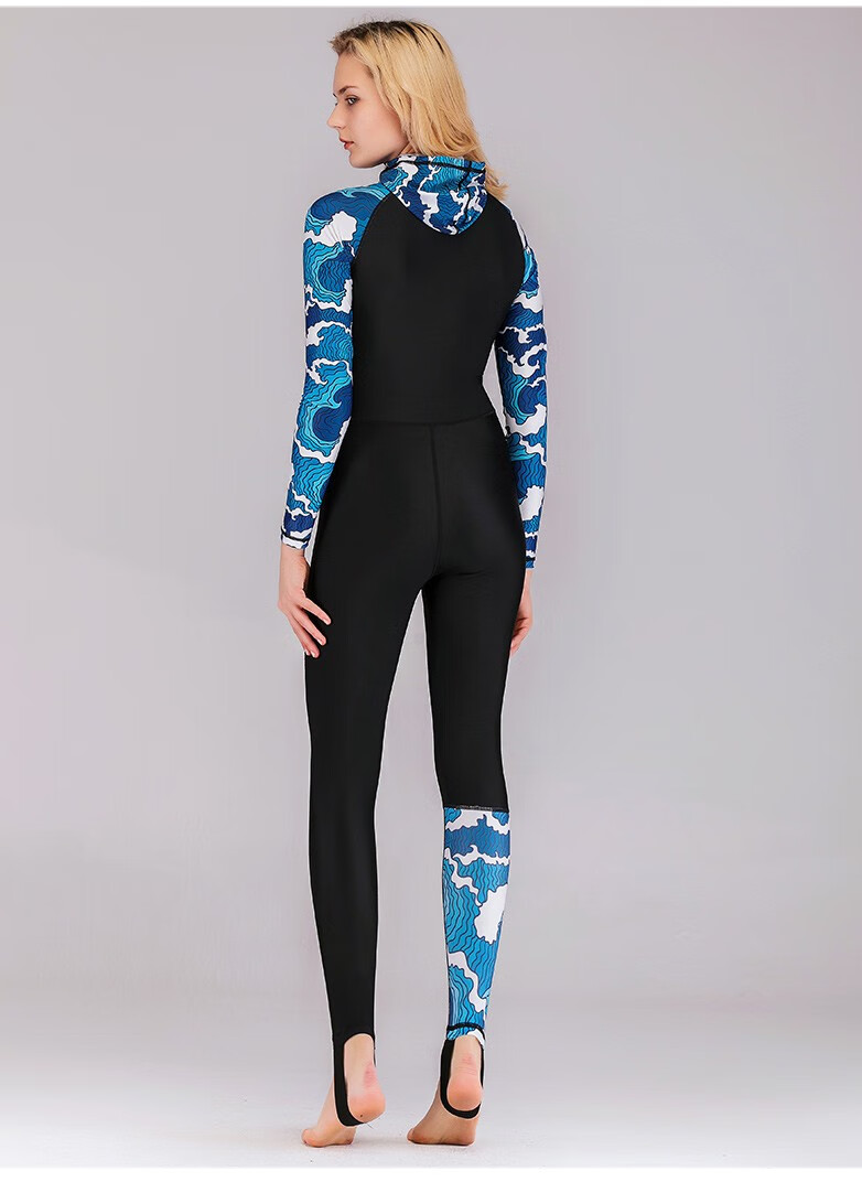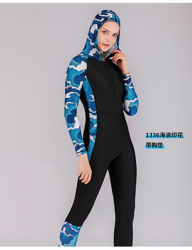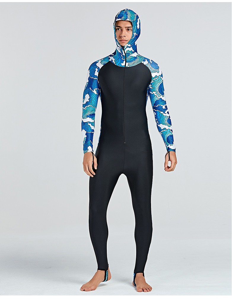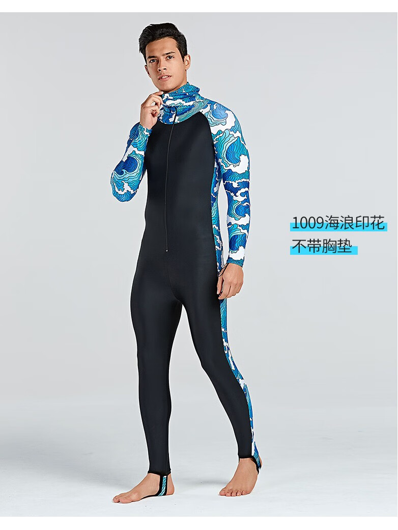Yobel men's full body wetsuit hooded women's one-piece long-sleeved trousers sun protection swimsuit quick-drying jellyfish suit snorkeling surfing suit for women men's 1009 wave print hooded XXL