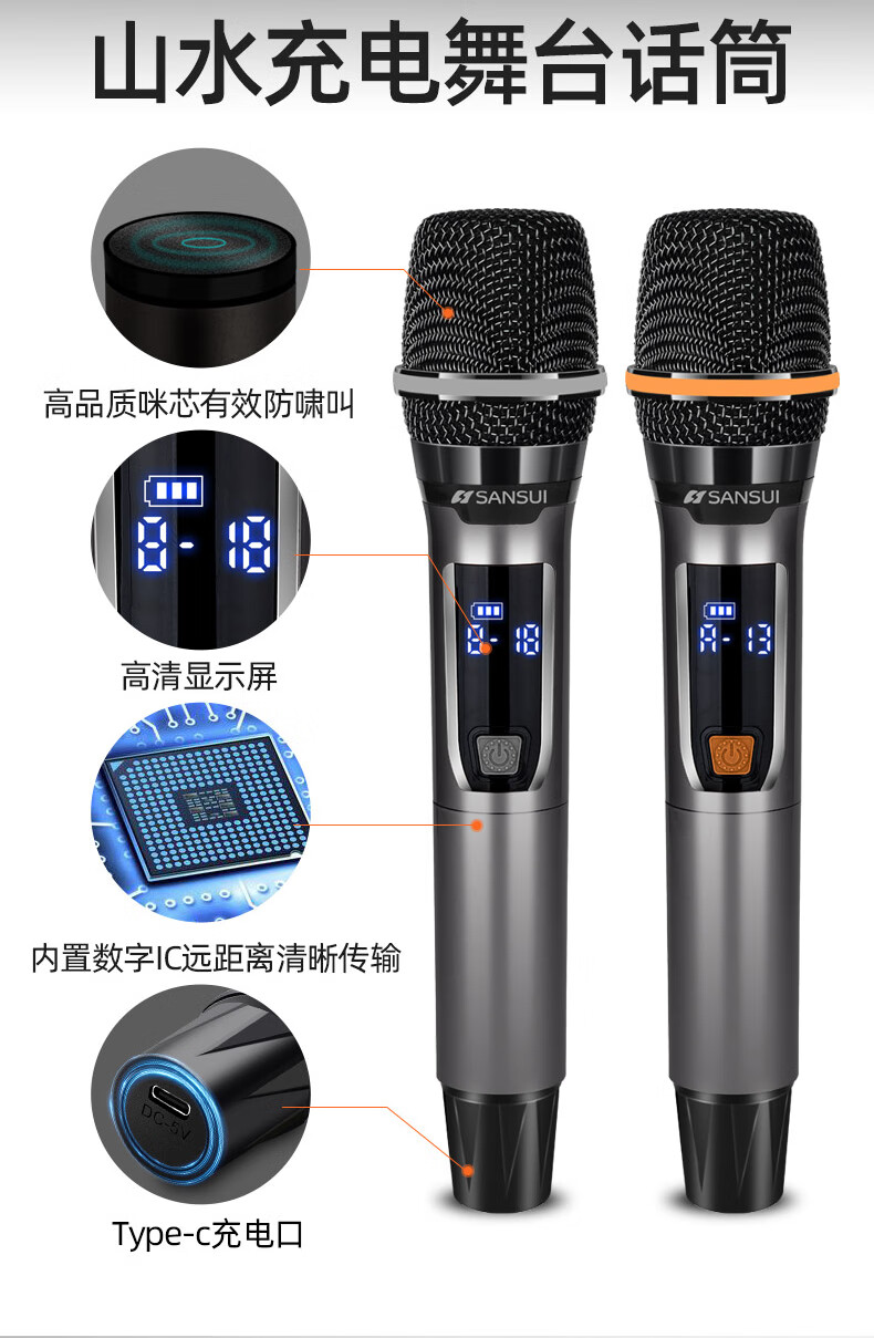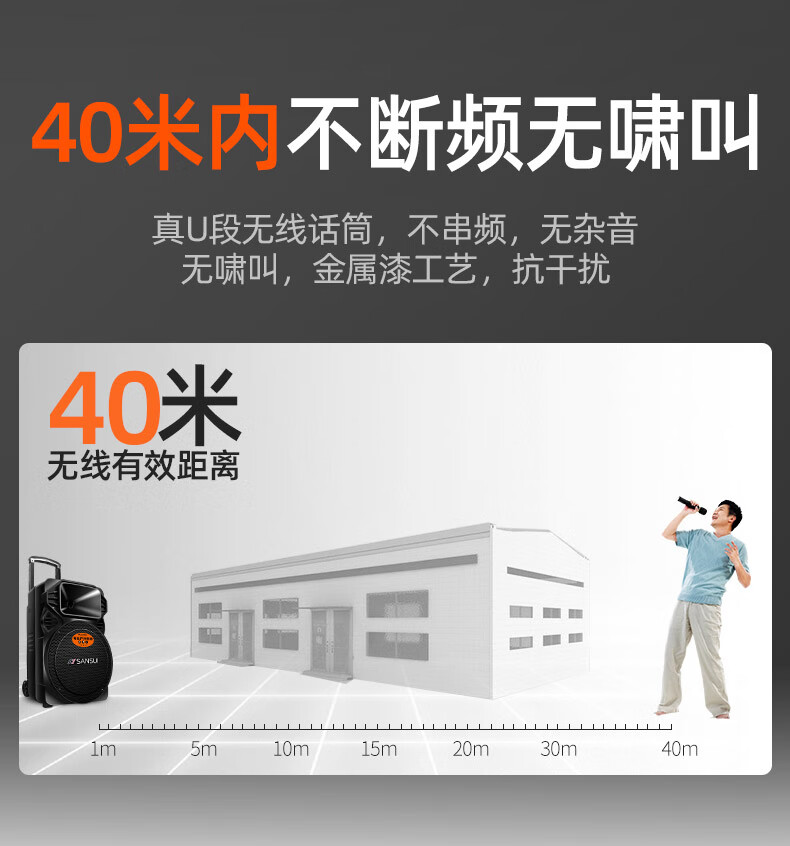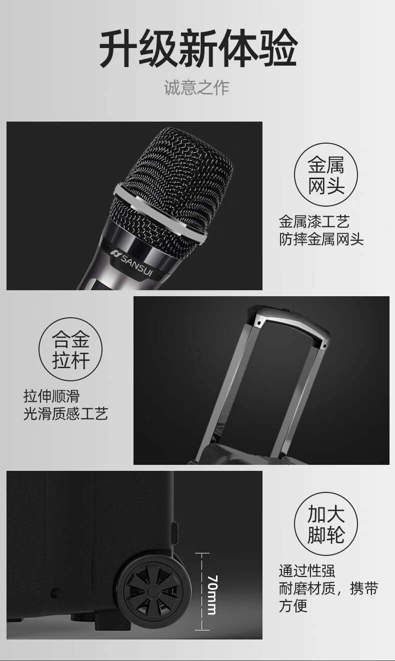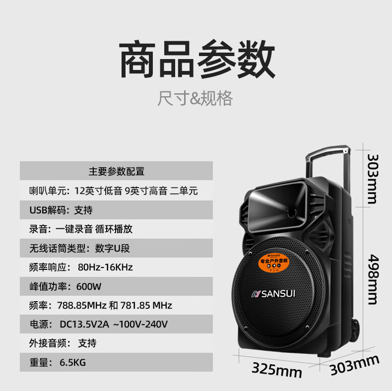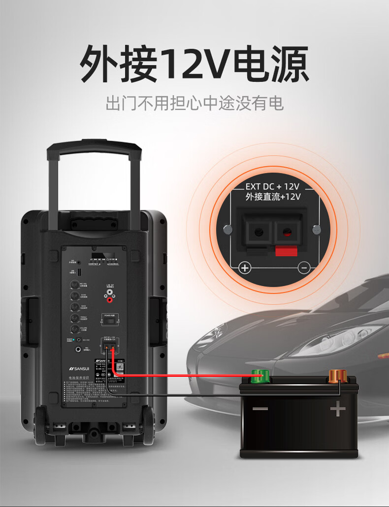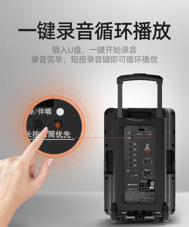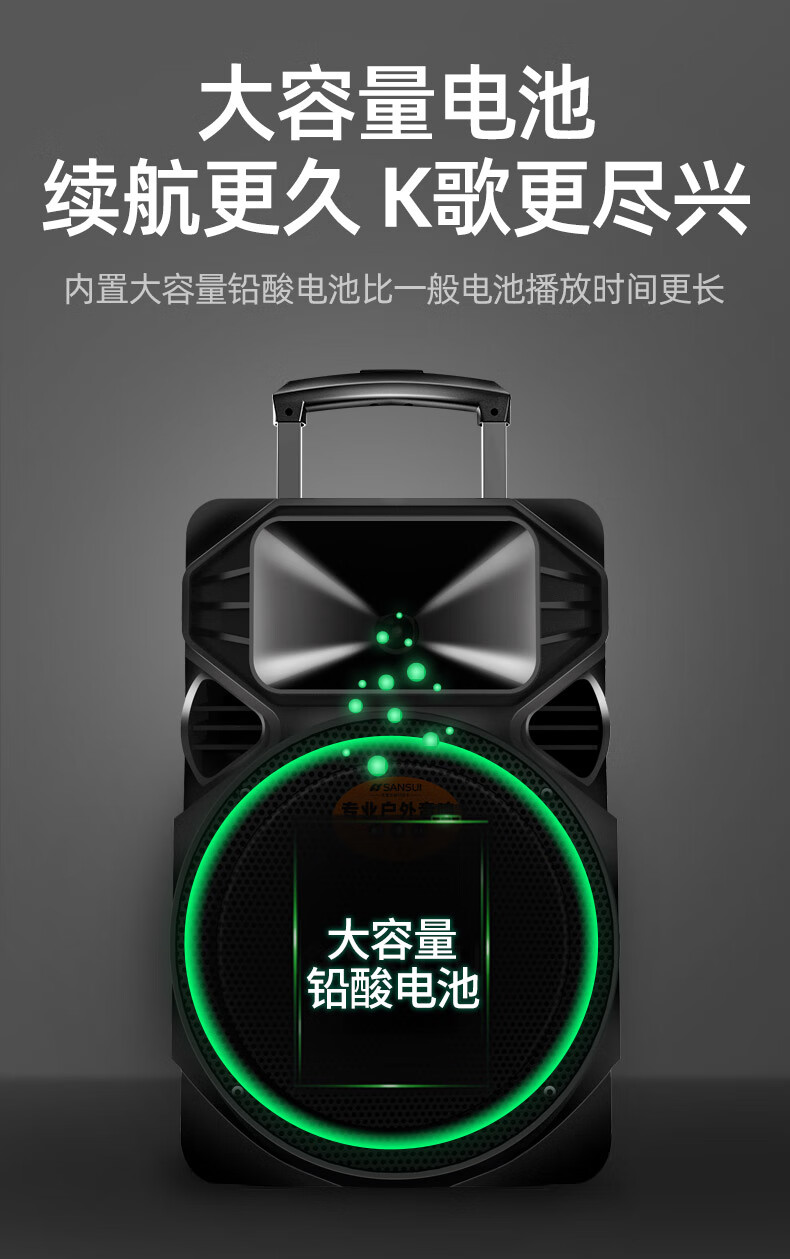SANSUI square dance trolley audio speaker Bluetooth outdoor karaoke portable mobile stage performance 12-inch audio high-power high-fidelity waterproof home 12-inch subwoofer 30 hours + dual microphones
