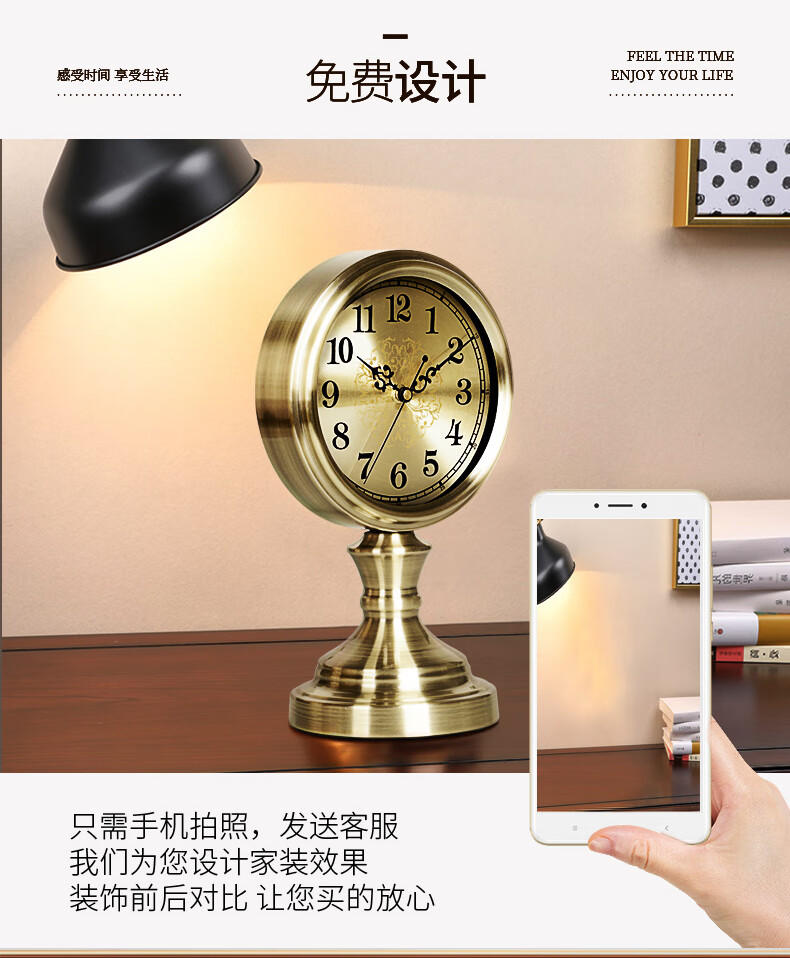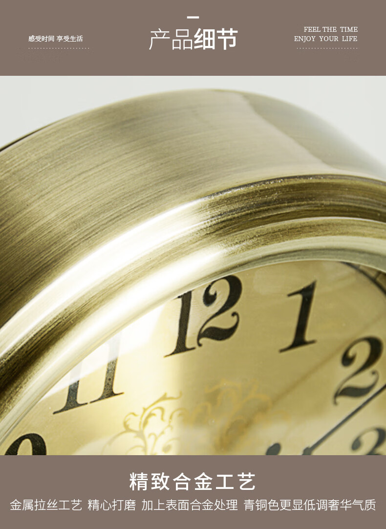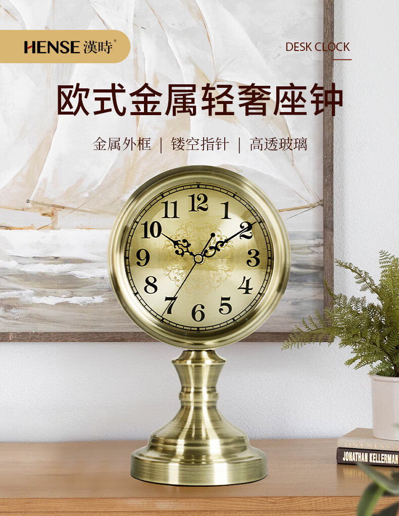Hanshi (Hense) Creative Simple Table Clock Desktop Clock Ornament Clock Desktop Pendulum Clock Living Room Bedroom High-end Table Clock HD312 Bronze