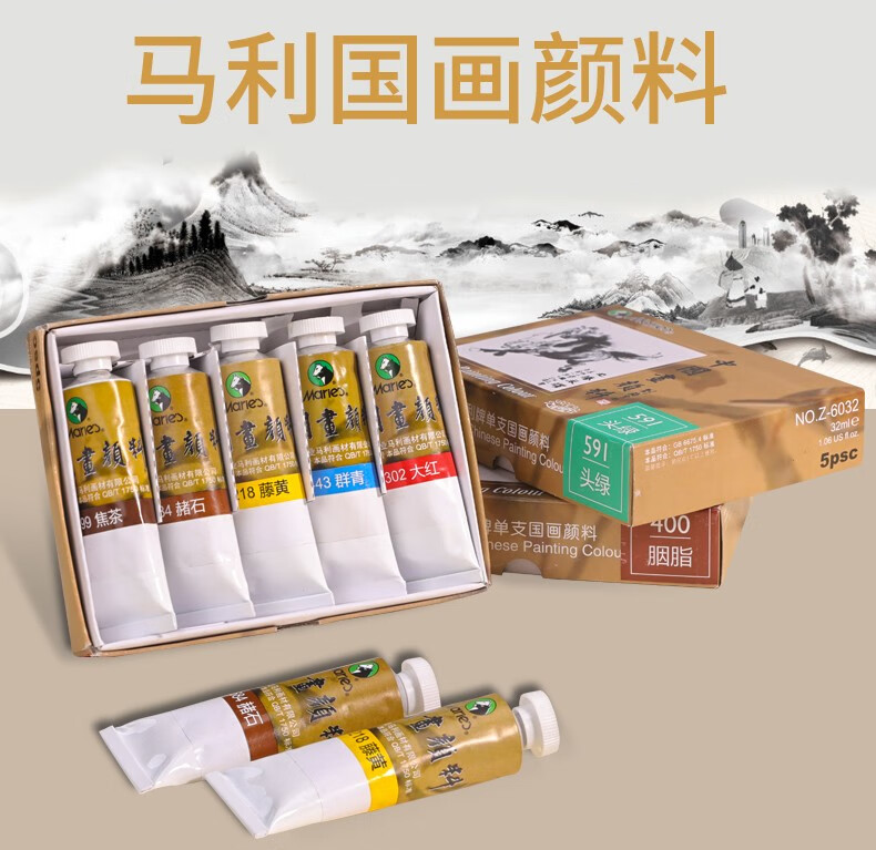 Marley large-pack Chinese painting pigment single ink painting peony landscape painting Chinese painting pigment 32ml single ocher
