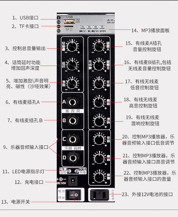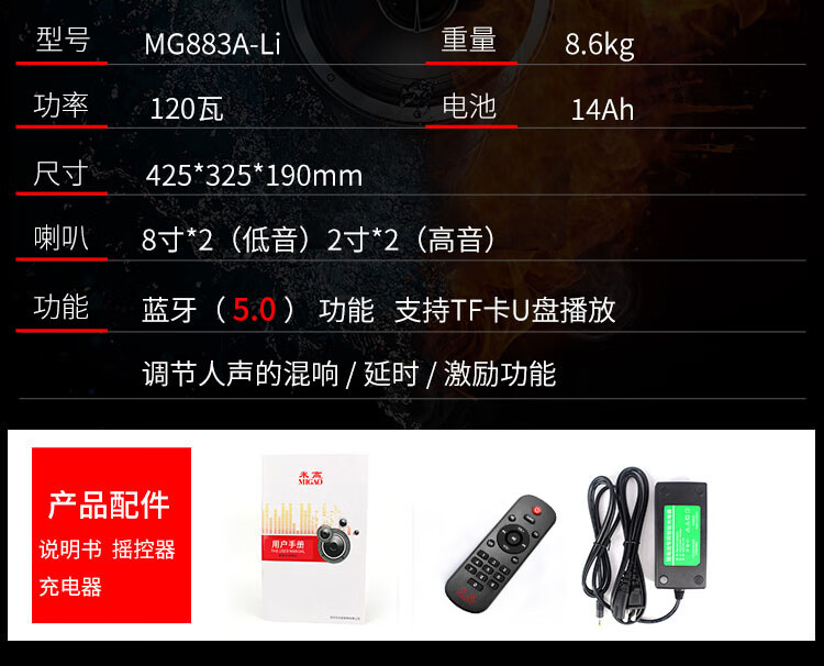 Mi Gao MG883A guitar playing and singing street vending speaker musical instrument accompaniment publicity speech teaching street vending audio 1 strap audio (microphone not included)