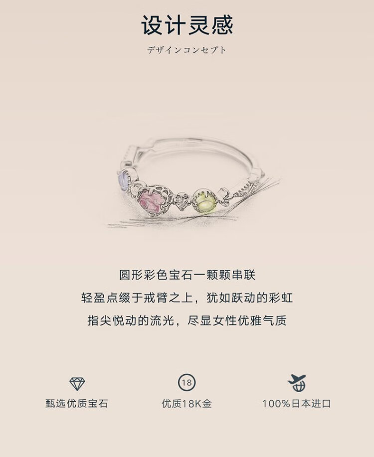 CIRCLE 18K gold tanzanite tourmaline three-color gemstone ring women’s birthday gift for girlfriend #10