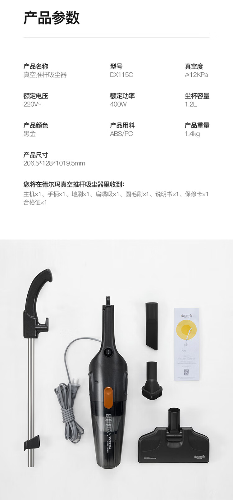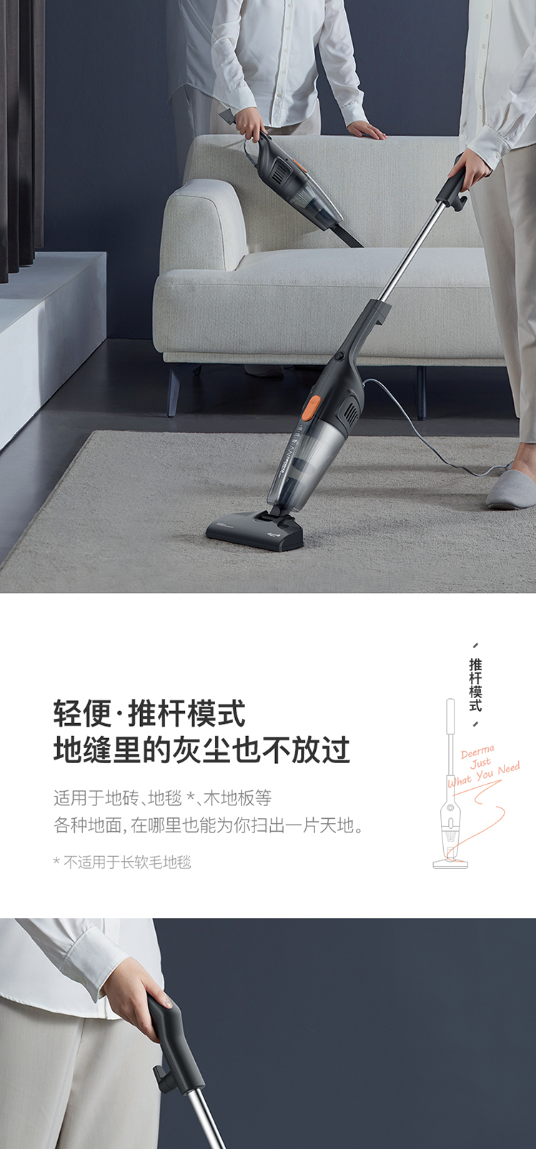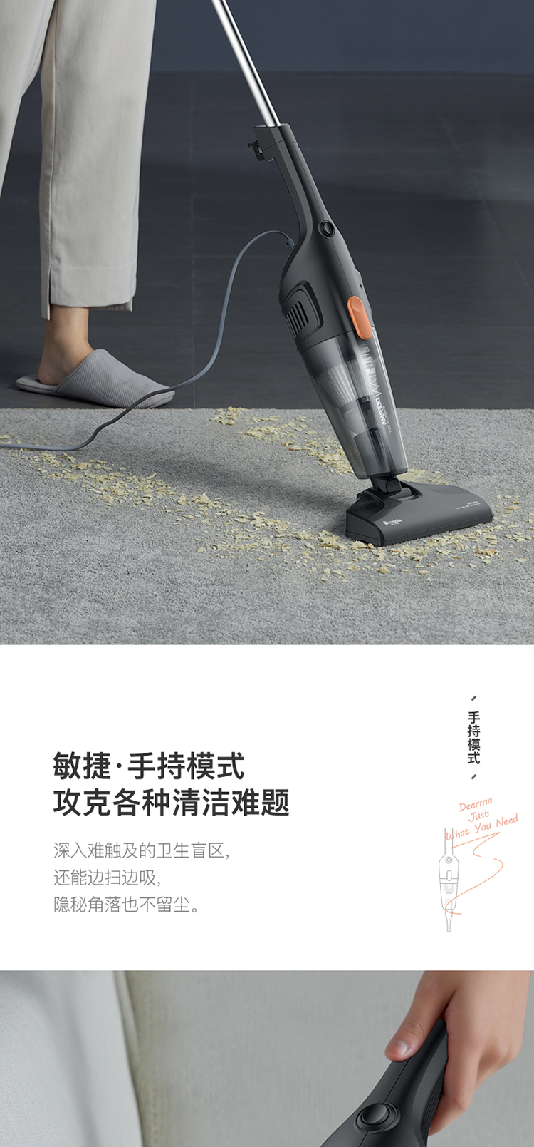 Deerma DX115C household corded vacuum cleaner lightweight design powerful high-power vacuum cleaner pet carpet handheld push rod two-in-one vacuum cleaner