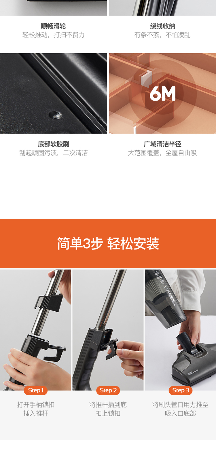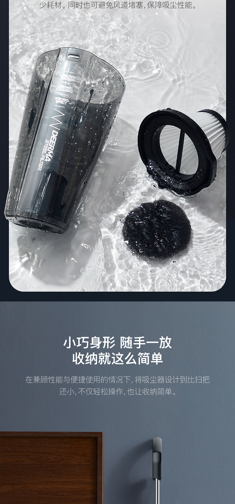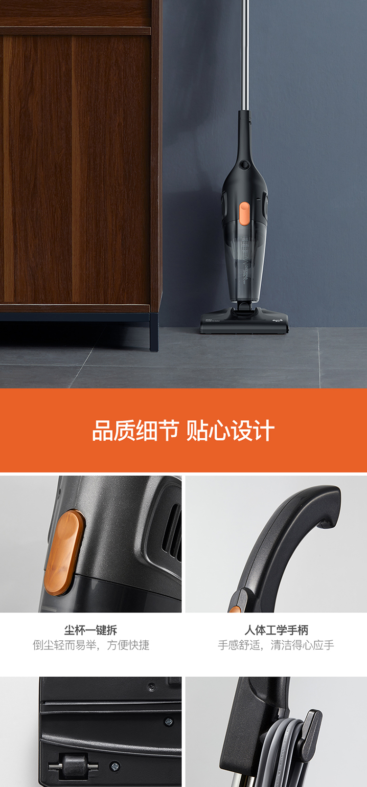 Deerma DX115C household corded vacuum cleaner lightweight design powerful high-power vacuum cleaner pet carpet handheld push rod two-in-one vacuum cleaner