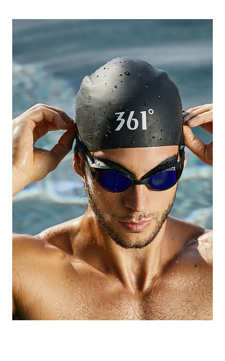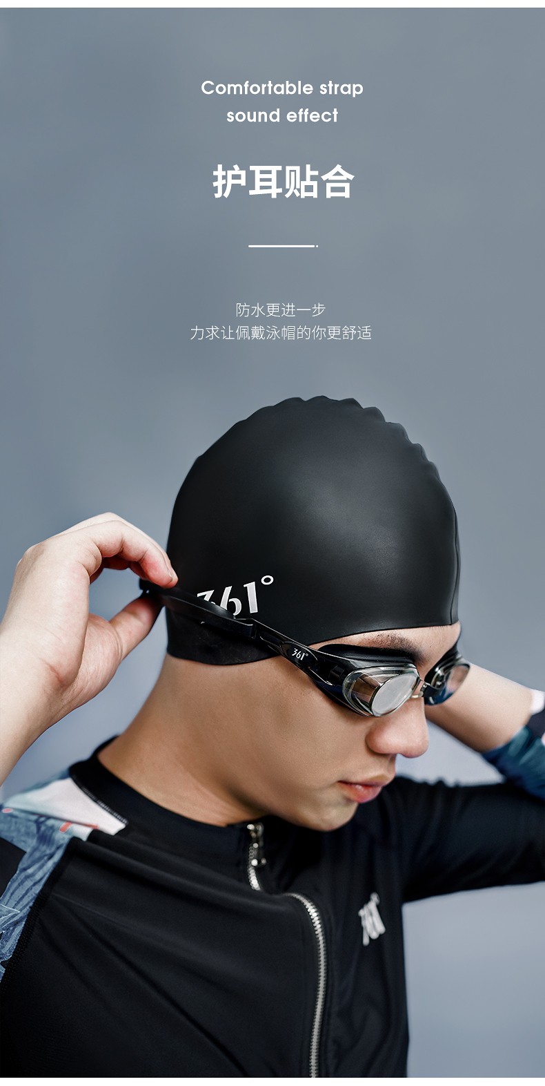 361 swimming cap for men and women, adult waterproof large ear protection, comfortable and non-stretching, professional silicone training swimming cap, black