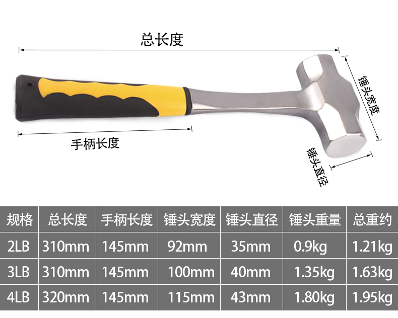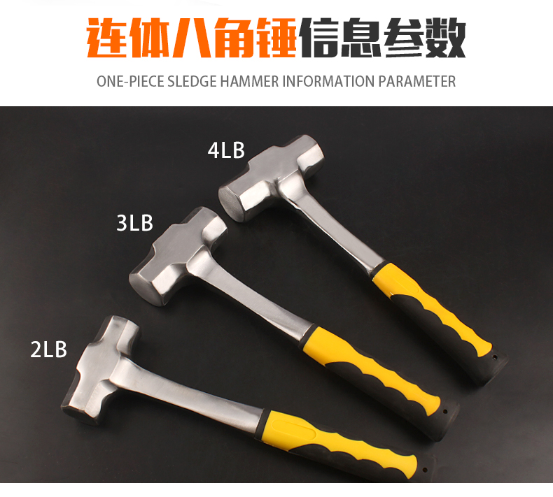 MYTEC octagonal hammer, wall smashing sledge hammer, solid conjoined one-piece hammer, wall demolition hammer, iron hammer, all-steel hand hammer masonry hammer, 2-pound conjoined octagonal hammer, non-turning