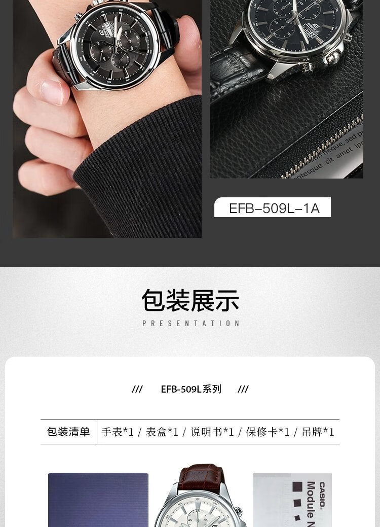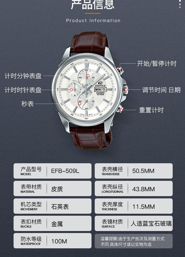 CASIO watch men's EDIFICE waterproof business quartz Japanese and Korean watch gift watch for boyfriend gift EFB-509L-1A