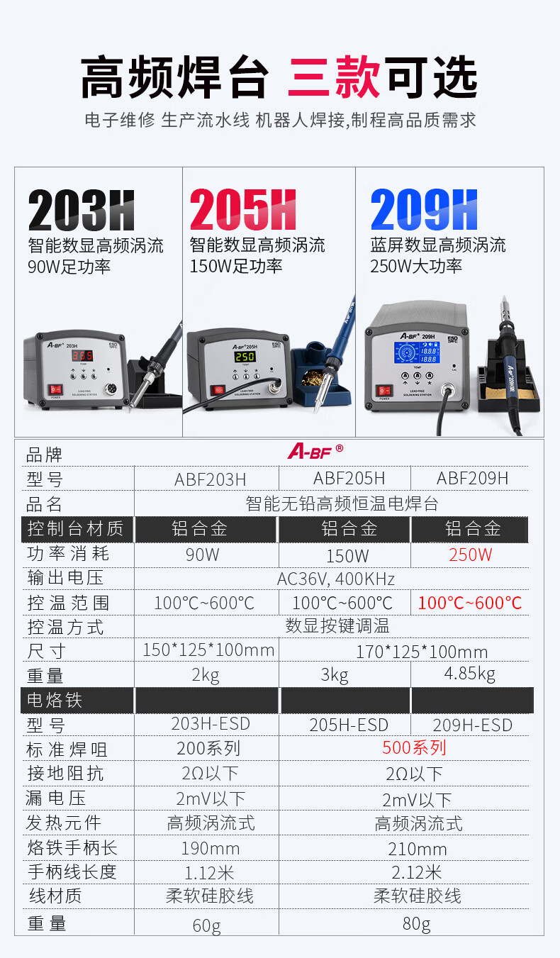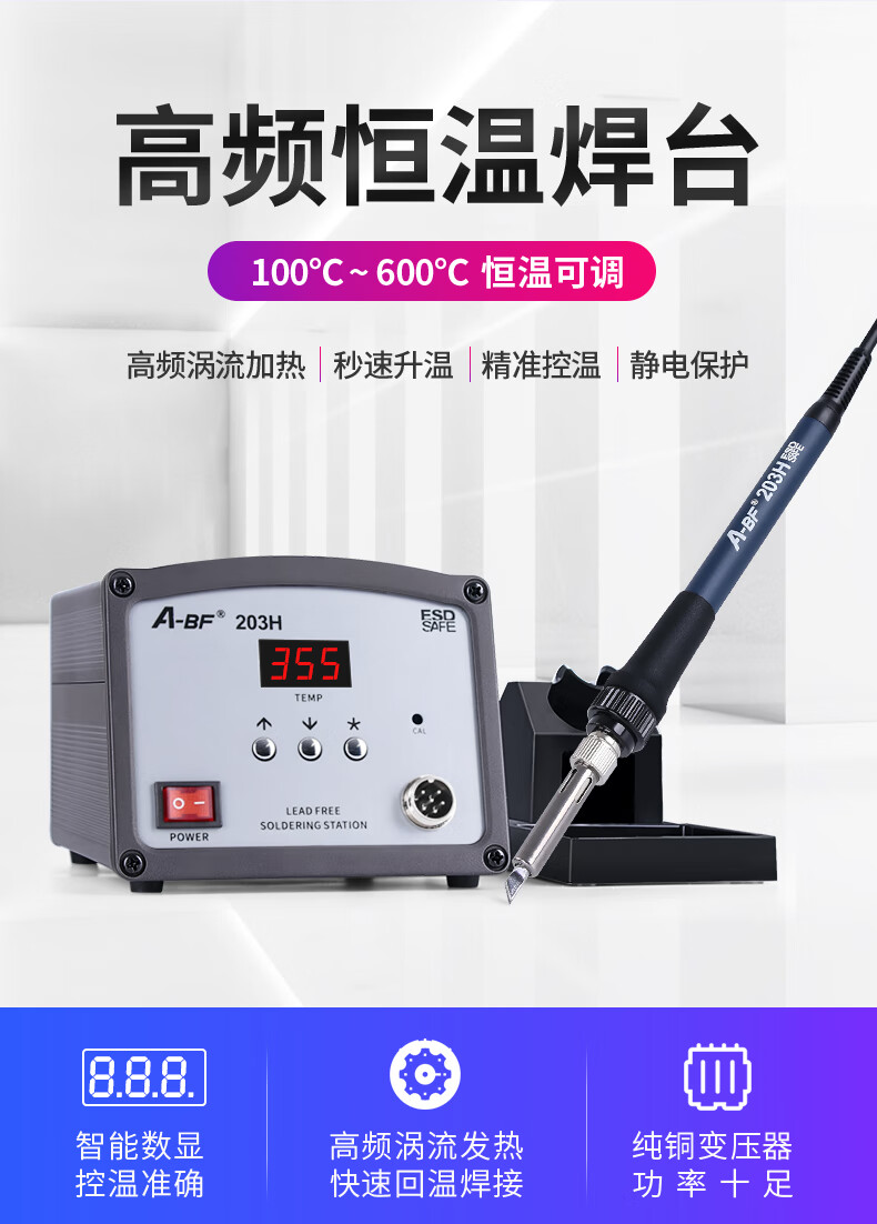 A-BF High Frequency Intelligent Soldering Station Automatic Sleep Adjustable Constant Temperature Electric Soldering Iron Rapid Heating Set Soldering Station ABF-205H Package 1 (7 Soldering Iron Tips)