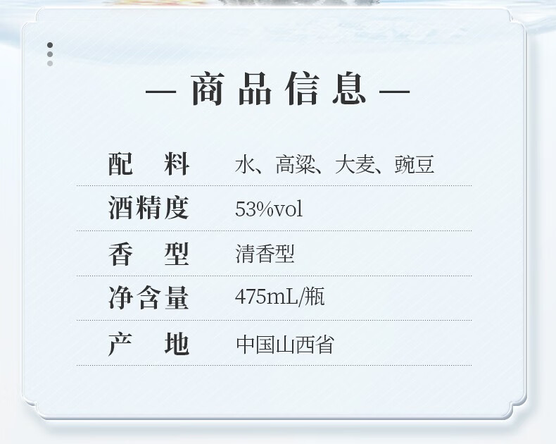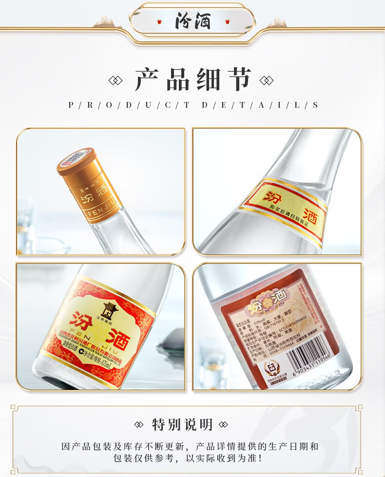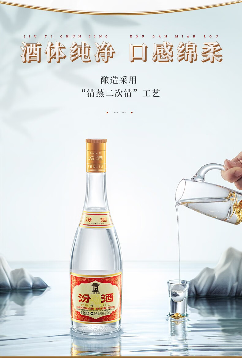 Fenjiu 53% yellow cover Fenjiu, light-flavor liquor, high-ration wine, bubble wine, 53%, 475mL, 6 bottles, full box, not original box