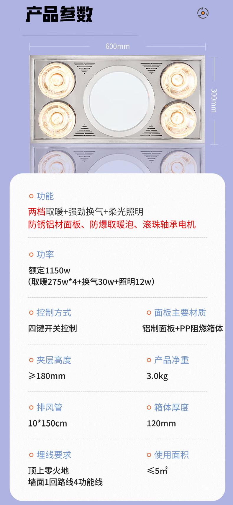 NVC (NVC) NVC Lighting Bath Heater Integrated Ceiling Bath Heater Lamp Wind Warm Bath Heater Ceiling Embedded Bathroom Heating Store Manager Recommendation ~ Four Head Light Bath Heater 30*60cm