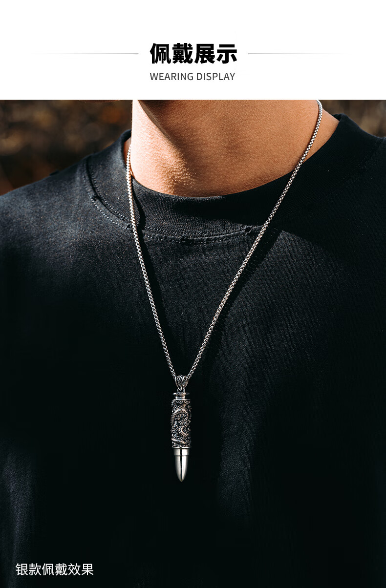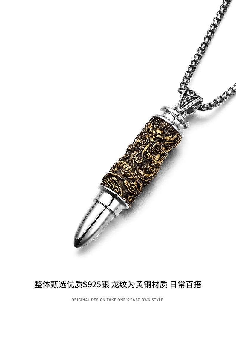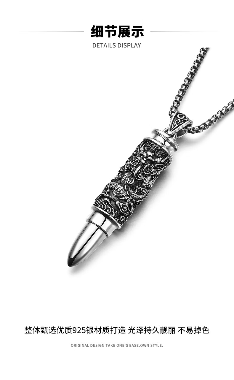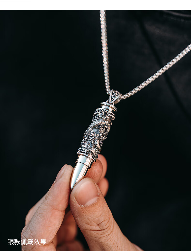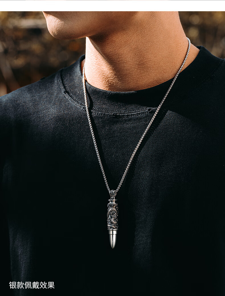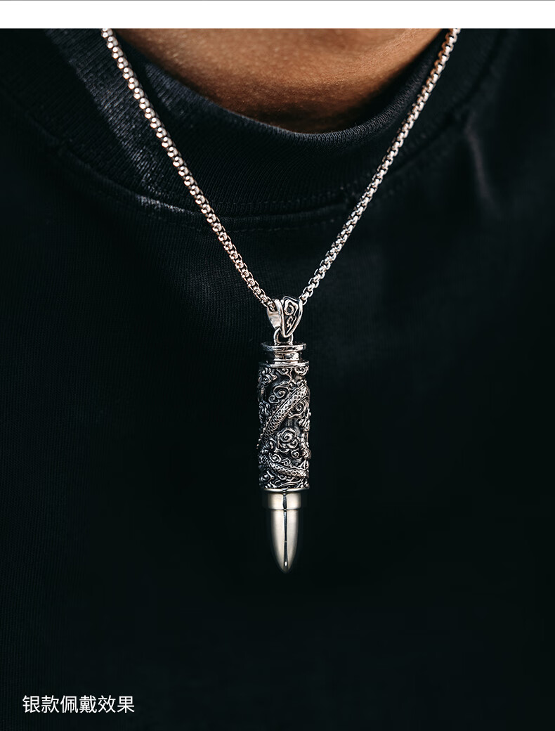 Mingyang Decorative Sea 925 Silver Xianglong Bullet Pendant Men's Zodiac Animal Year Necklace Domineering Retro Trendy Handmade Silver Jewelry Silver Style Pendant + Hexagonal Silver Chain-60cm