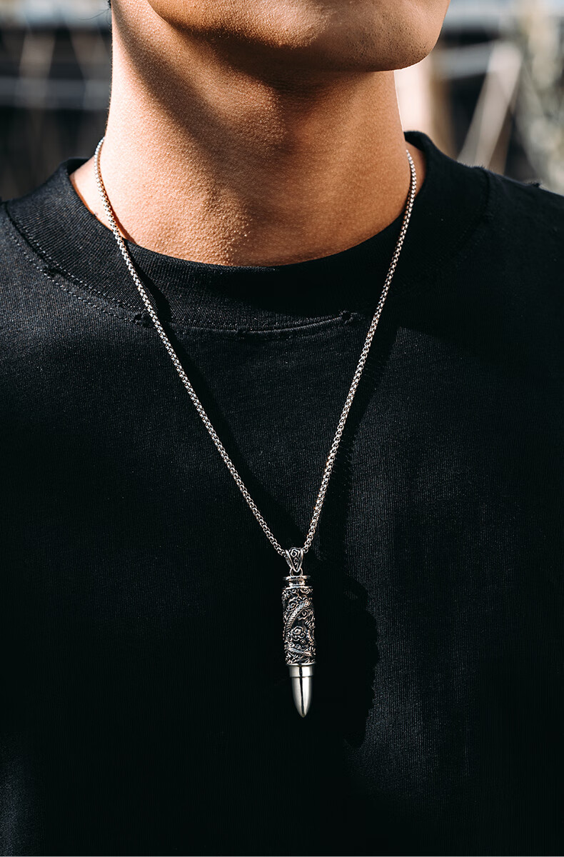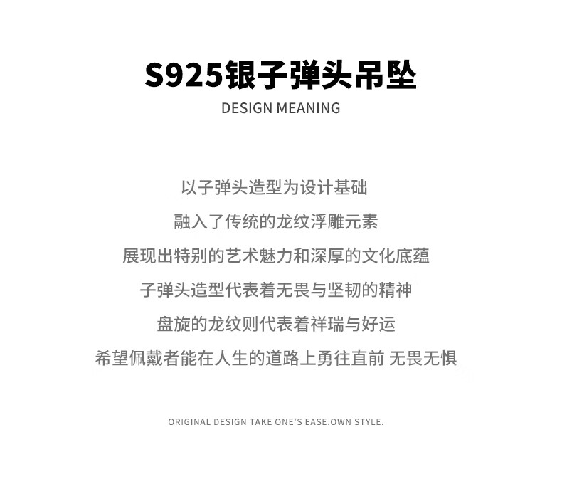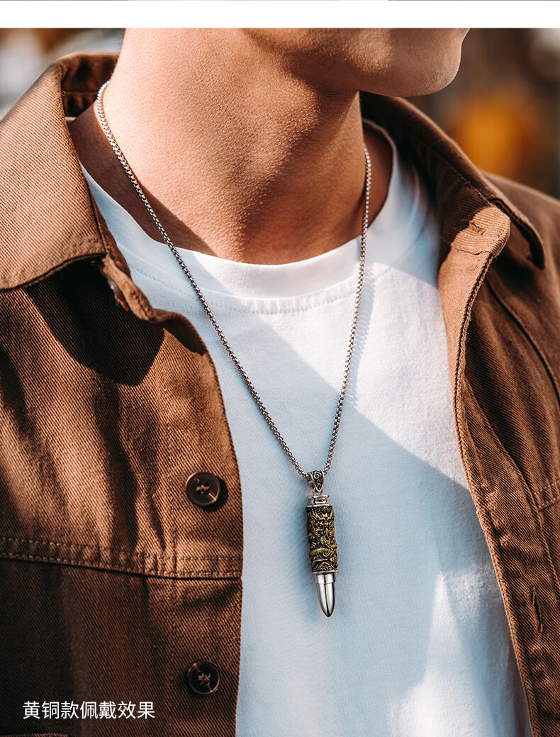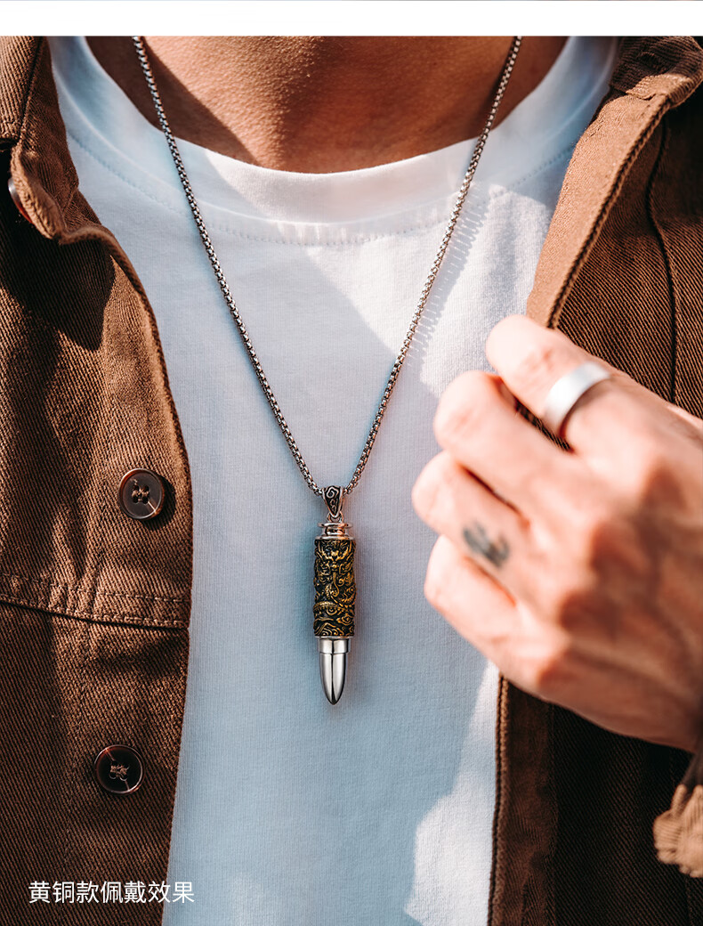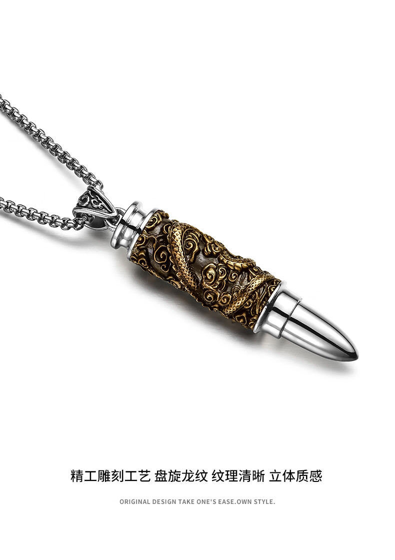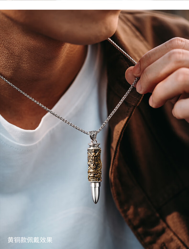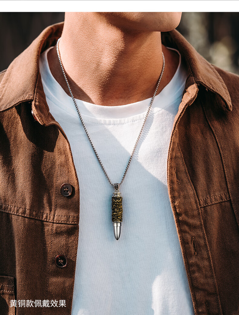 Mingyang Decorative Sea 925 Silver Xianglong Bullet Pendant Men's Zodiac Animal Year Necklace Domineering Retro Trendy Handmade Silver Jewelry Silver Style Pendant + Hexagonal Silver Chain-60cm