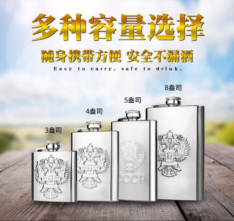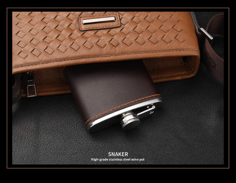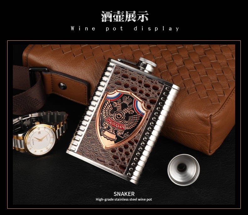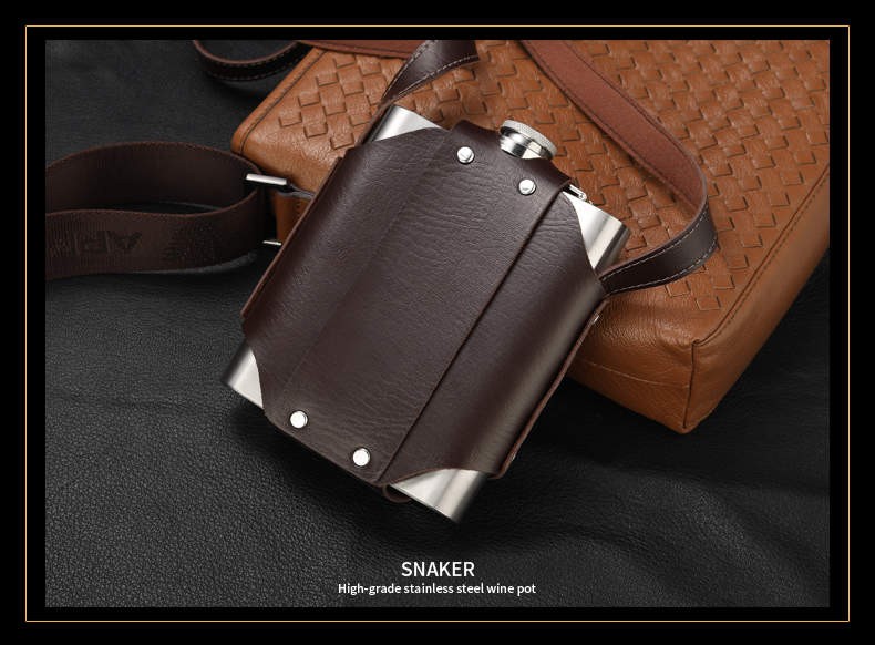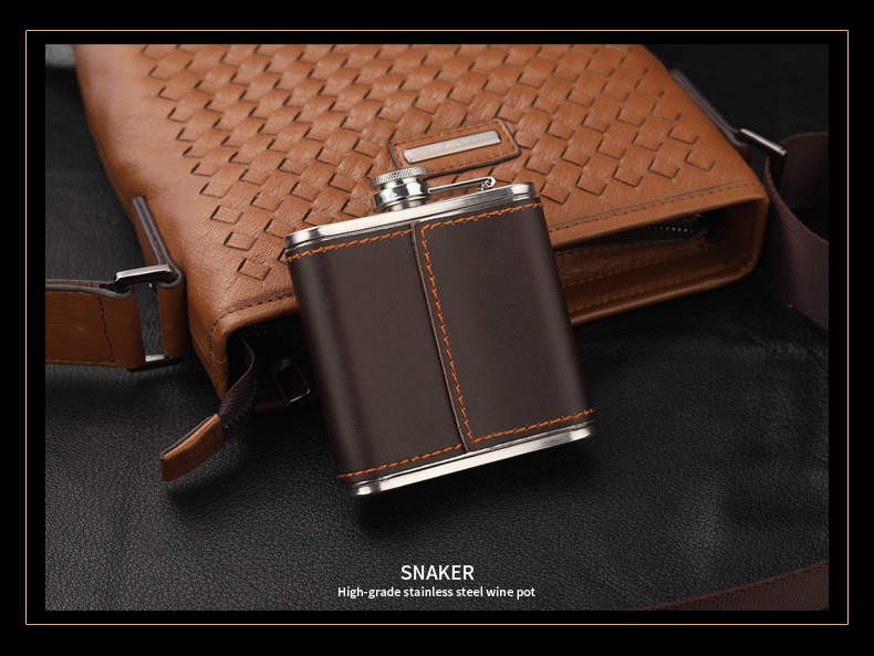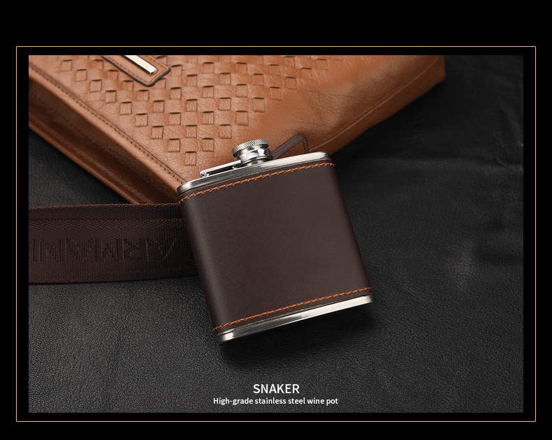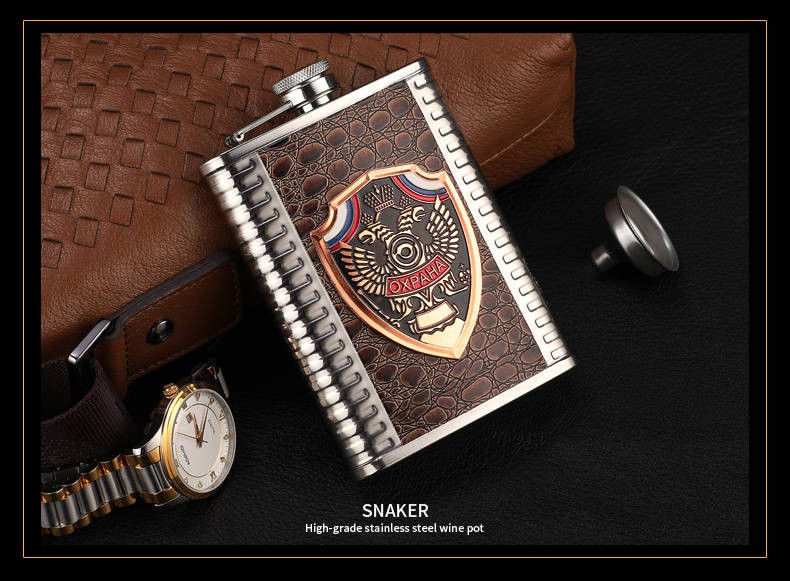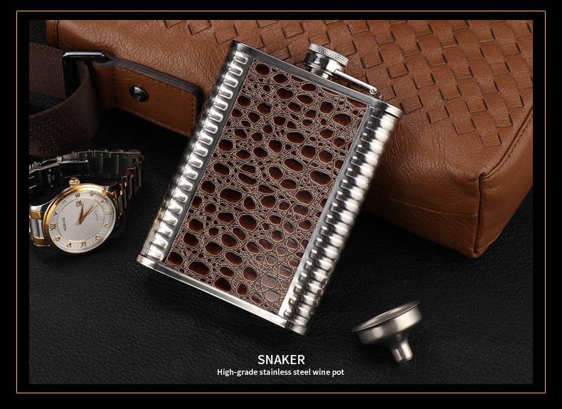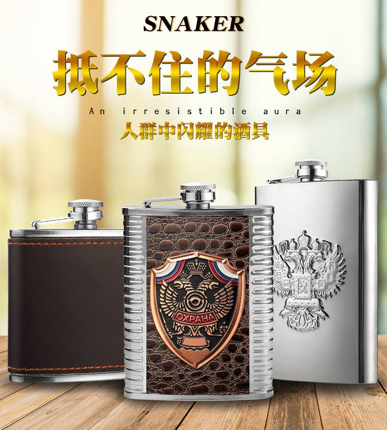 SNAKER small hip flask 304 stainless steel portable wine set can be engraved outdoor large capacity flat hip flask metal 3 taels free soldier 1 cup 1 drain 170ml