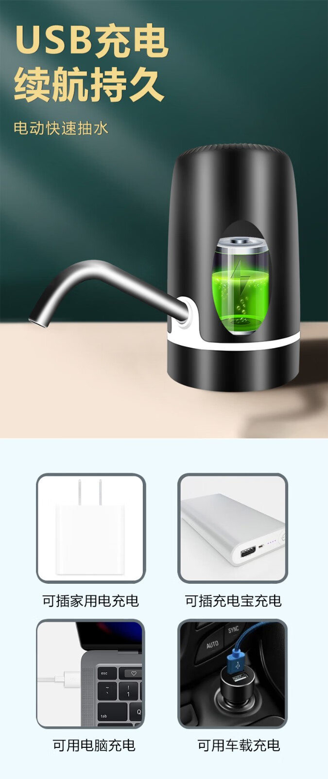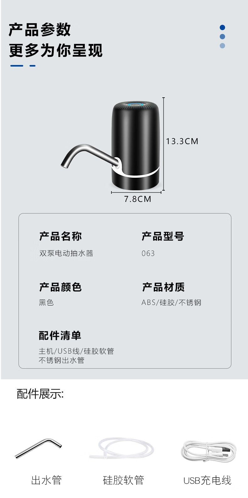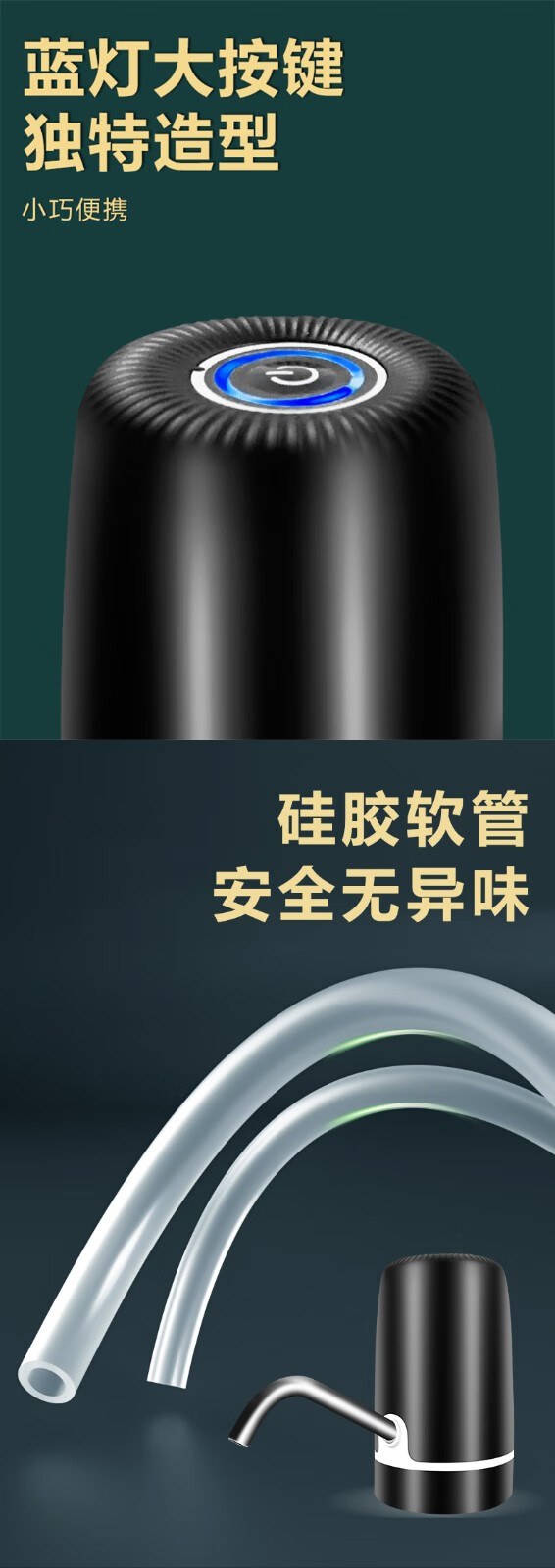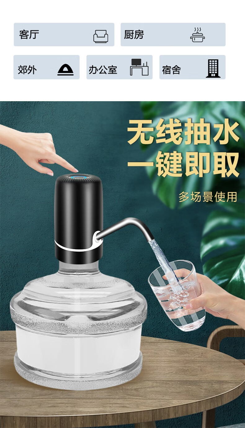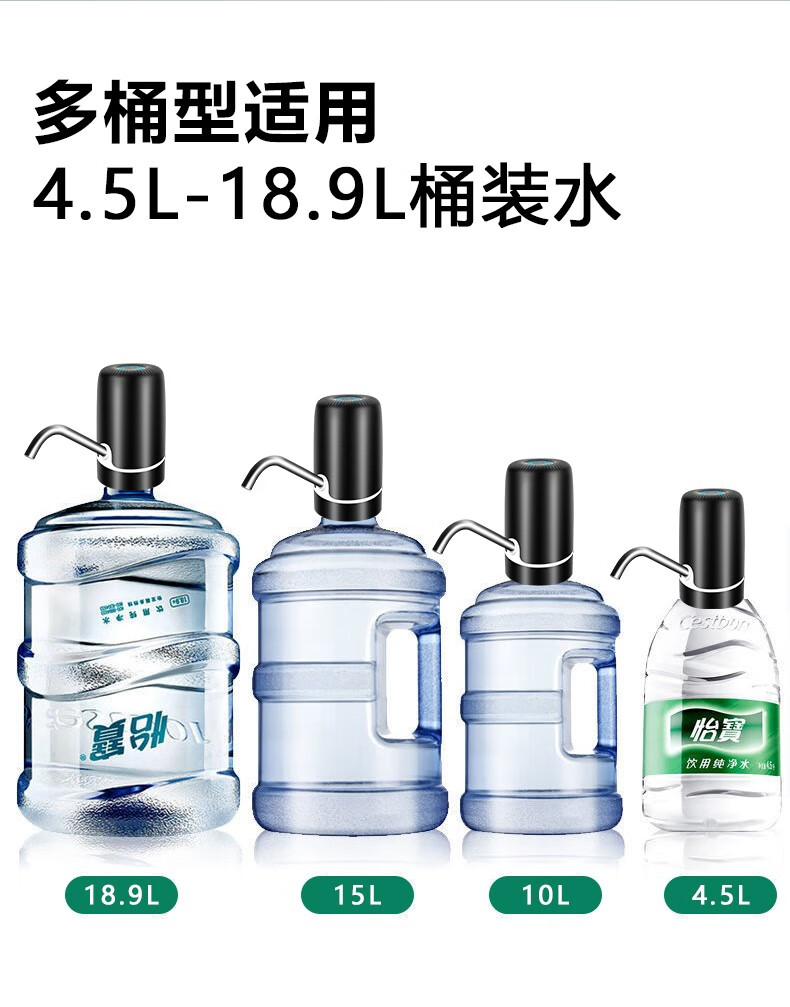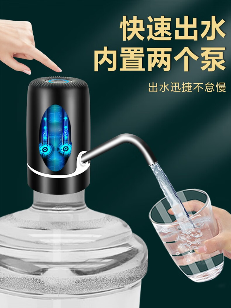 Zilu Electric Bottled Water Pump Automatic Water Adder Household Water Filler Water Pressure Pump Large Barrel Water Suction Dual Pump Black Basic Model + Stainless Steel Pipe
