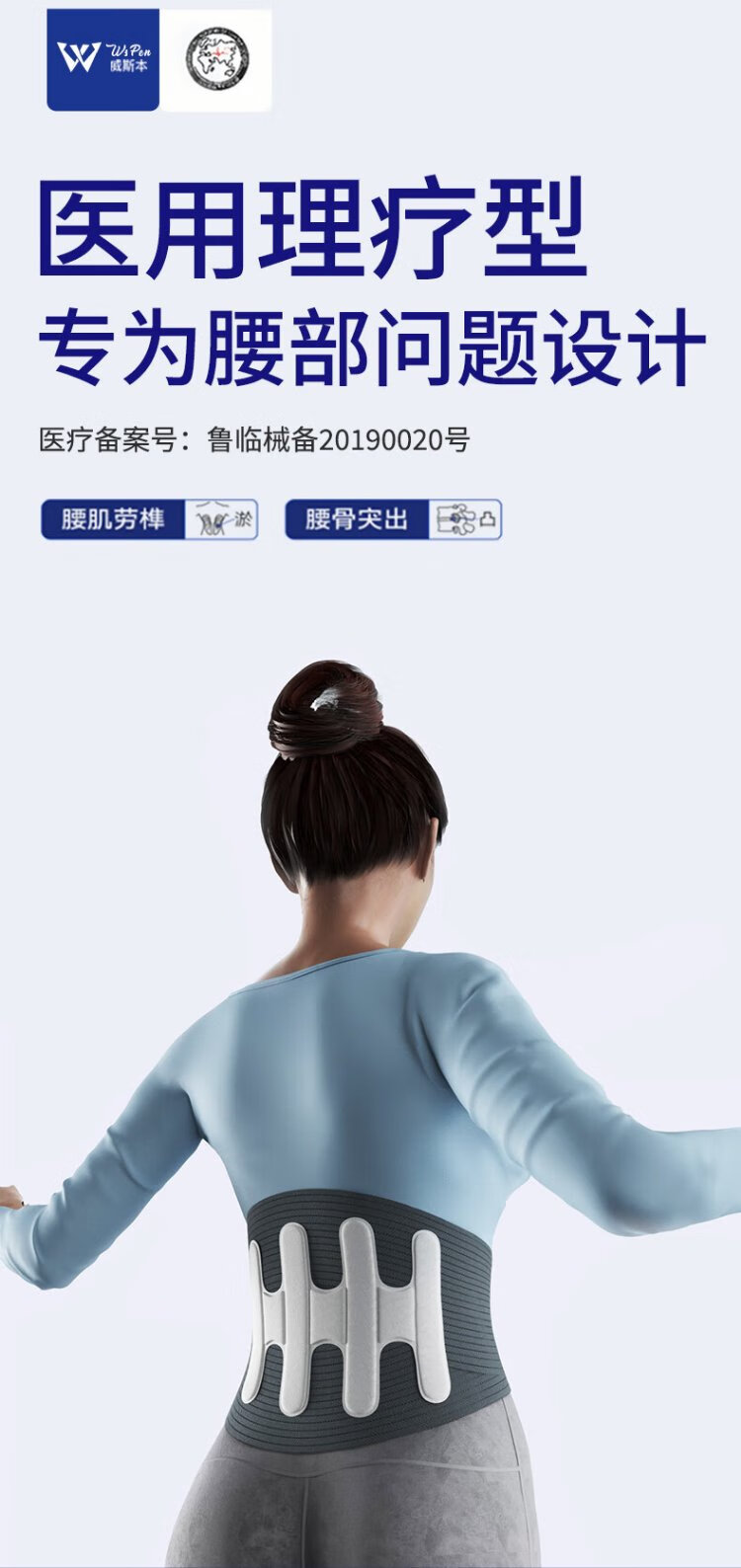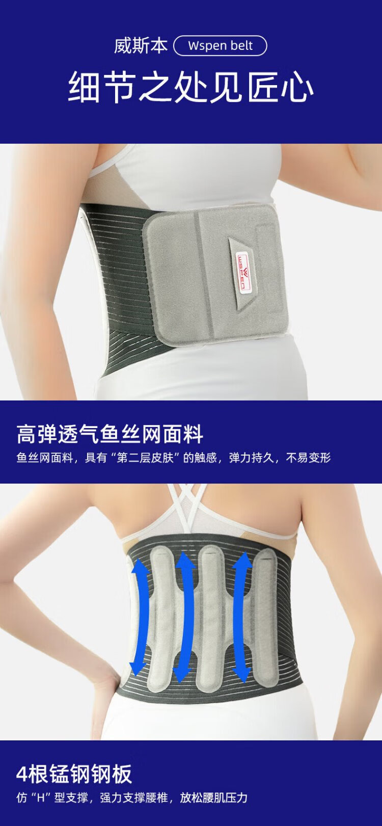 WSPEN German medical belt for lumbar disc herniation, lumbar muscle strain, lumbar prolapse and protrusion, breathable sedentary belt for men and women, L size 2 feet 6, waist circumference 3 feet 3