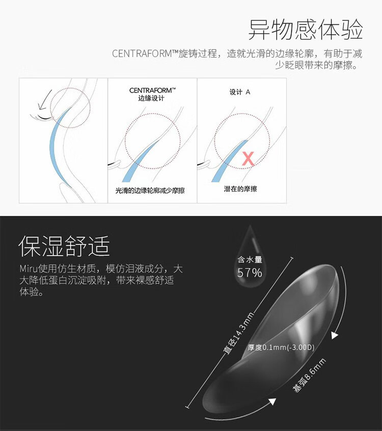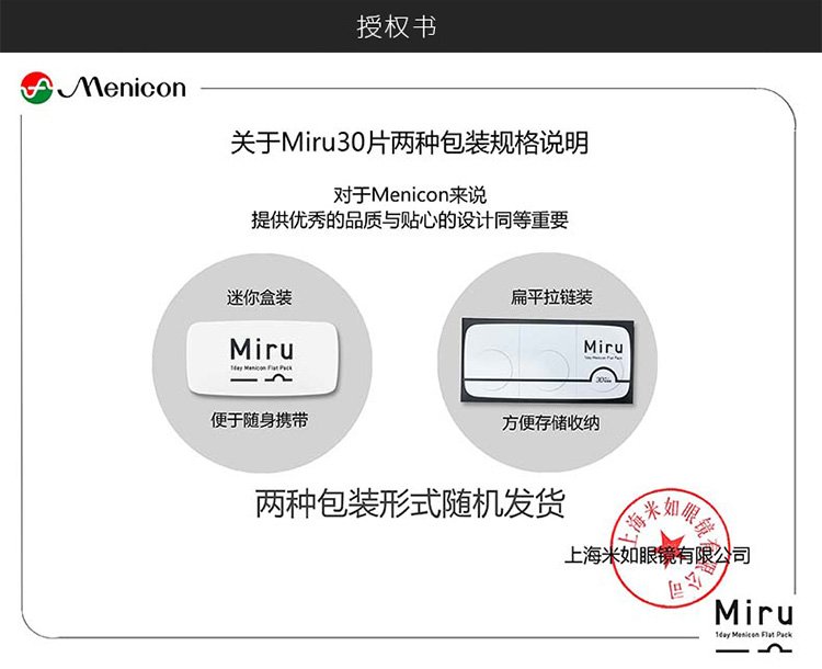 MIRU Miru Menikang Mu Likang highly hydrating myopia non-astigmatism contact lenses daily disposable 30 pieces 475 degrees