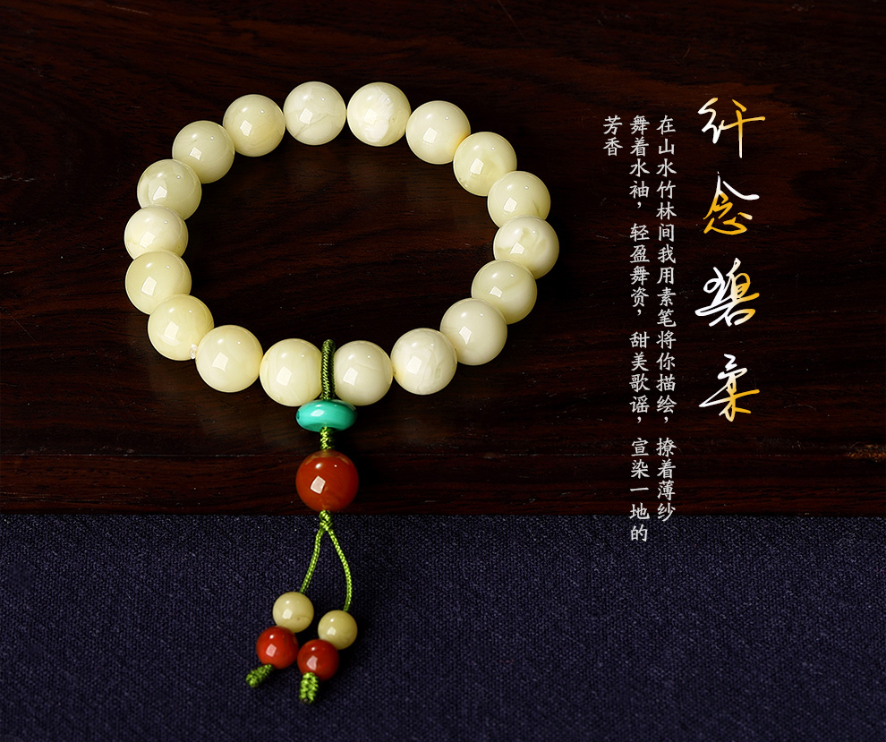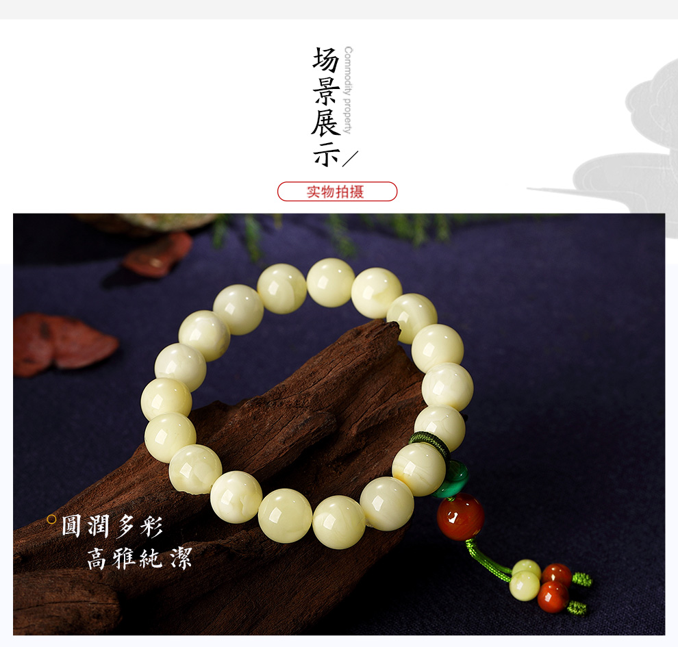 Ouchini Natural Baltic White Nectar Bracelet Unoptimized Full Honey Round Beads Beeswax Amber Bracelet for Women Now Weared and Made