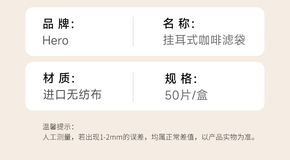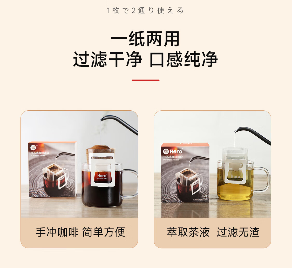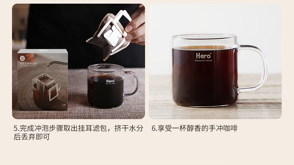 Hero imported from Japan hanging ear coffee filter paper portable filter hand-brewed coffee filter cup filter bag filter U-shaped ear hanging filter bag-50 pieces 50 sheets