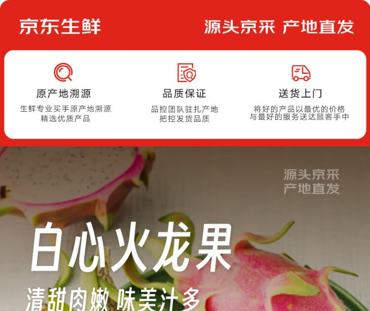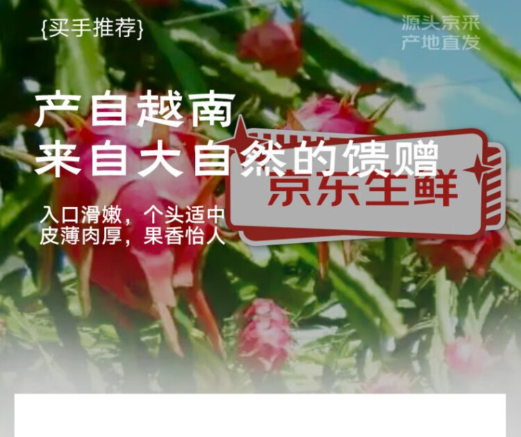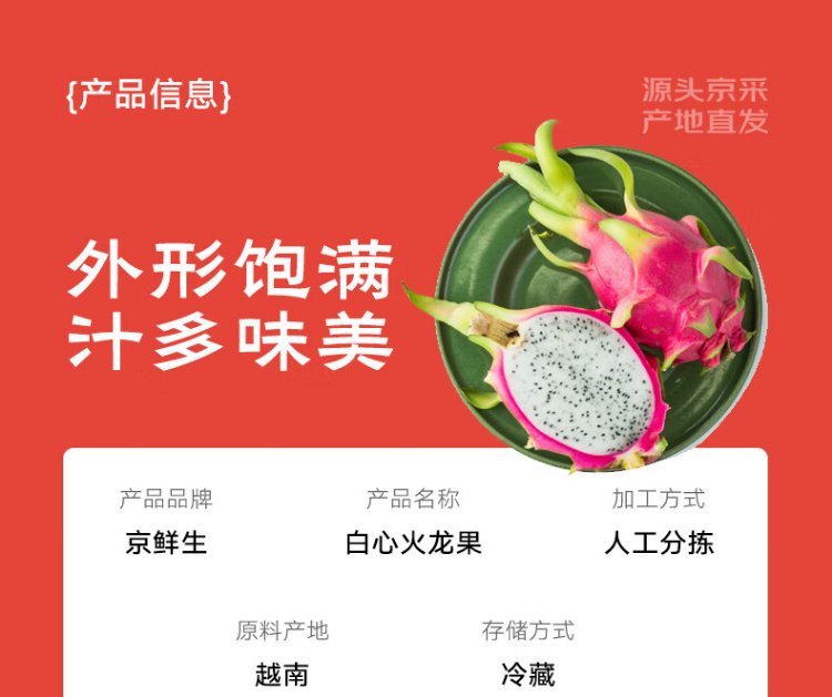 Jingxiansheng White Hearted Dragon Fruit imported from Vietnam, 2 packs, medium fruit, more than 300g per fruit, one piece shipped directly from the source