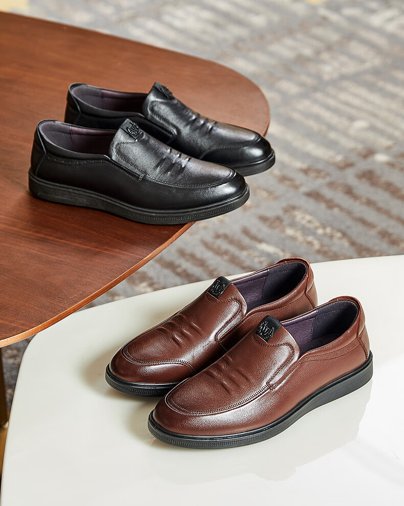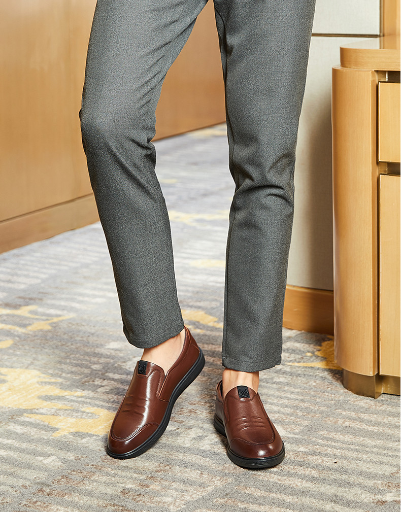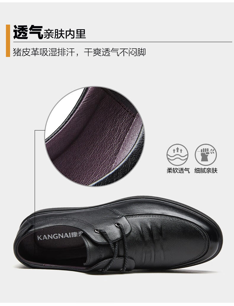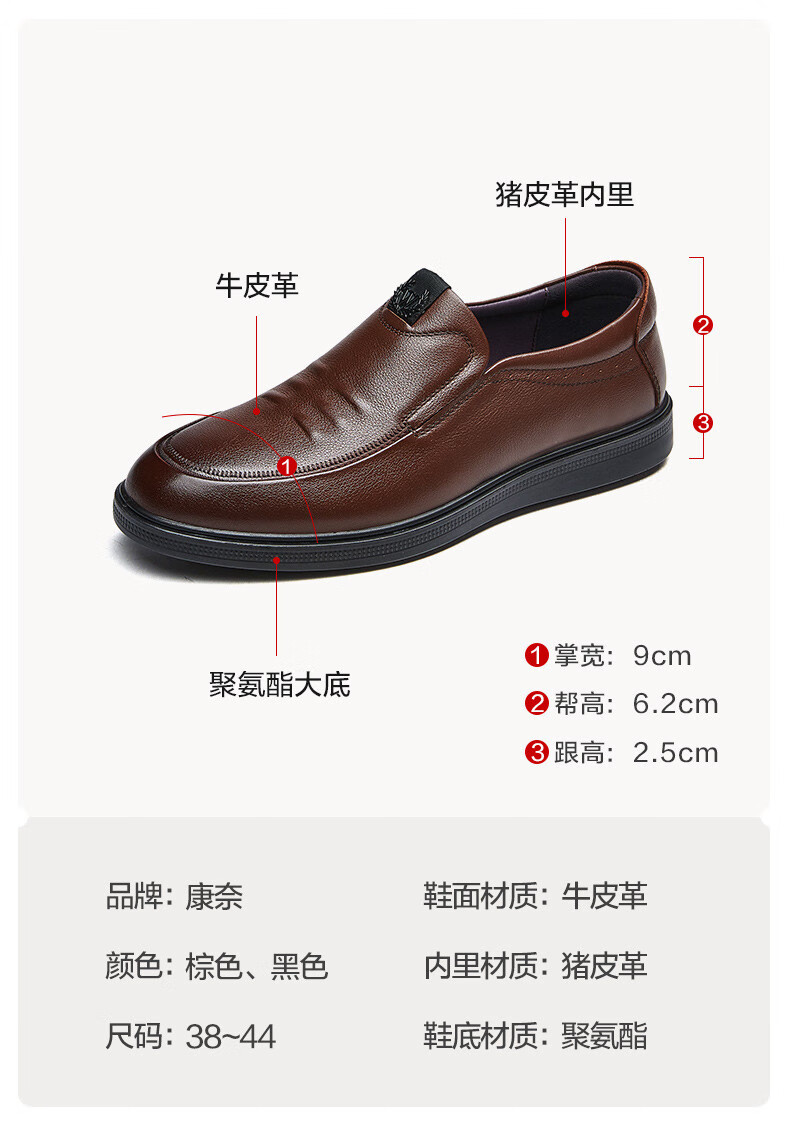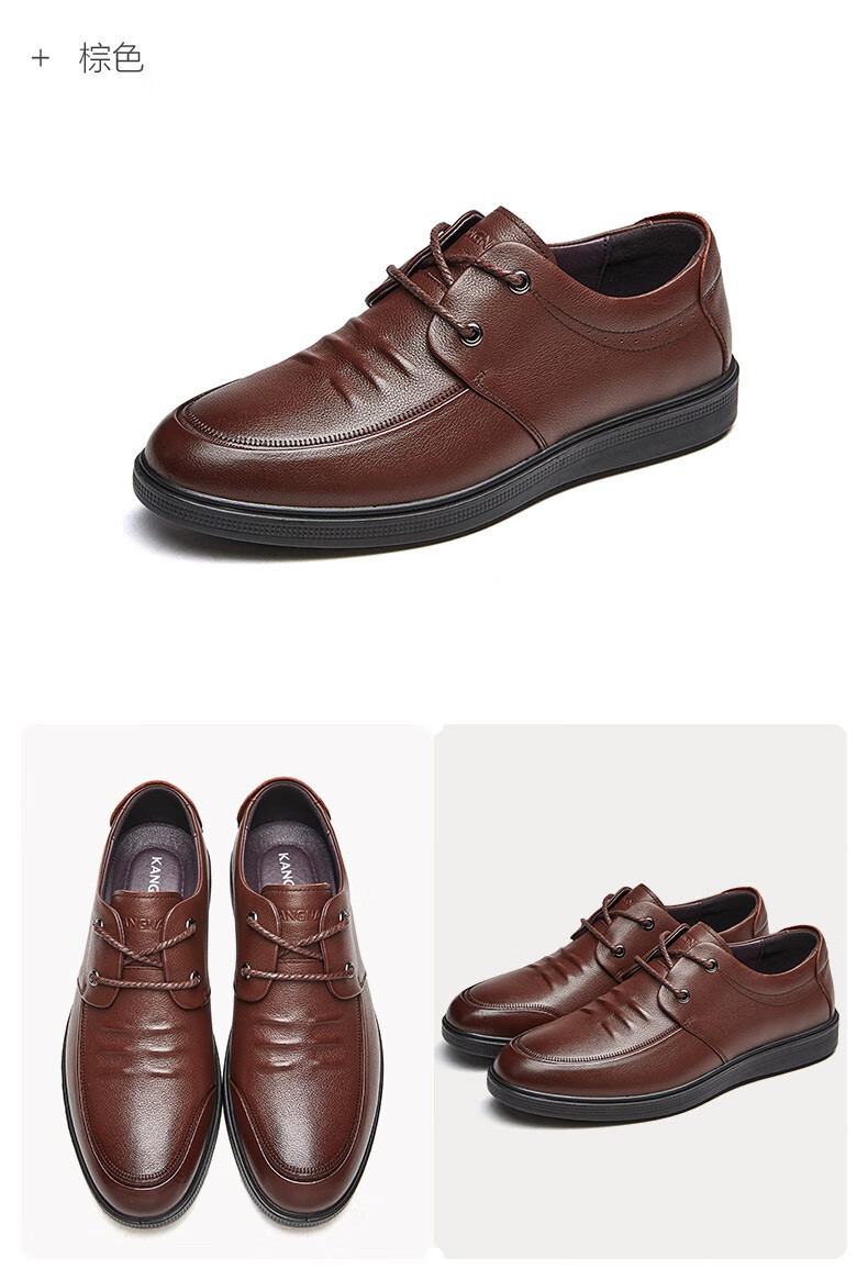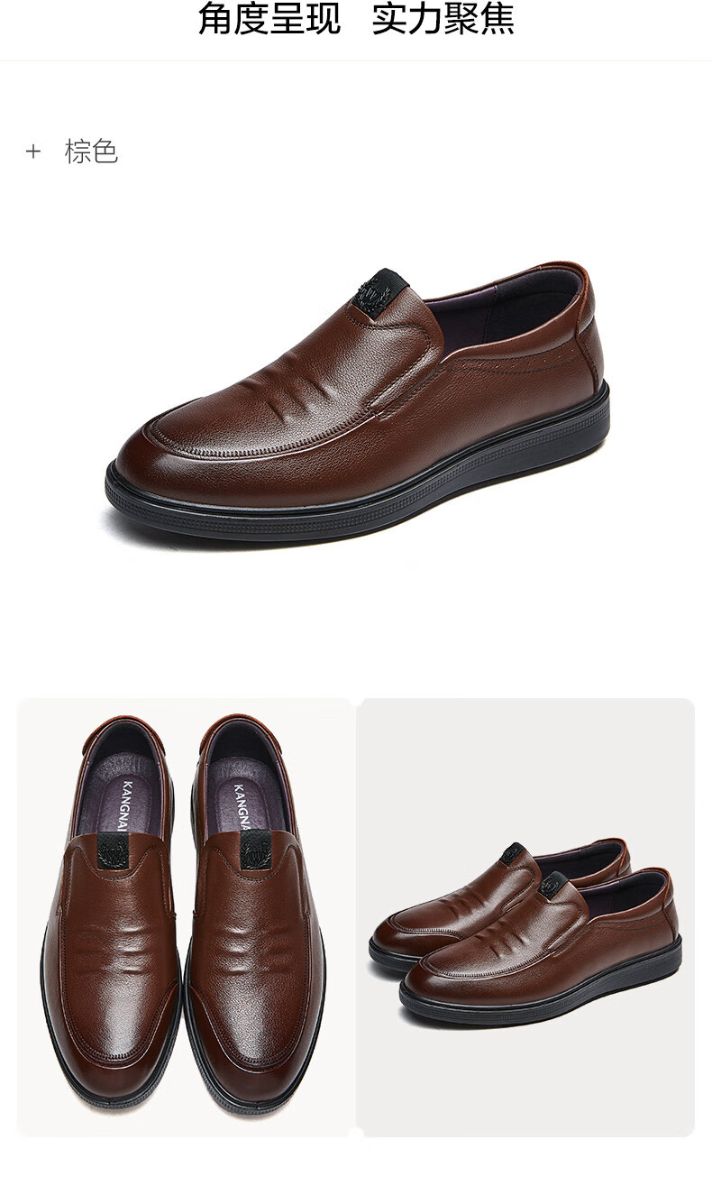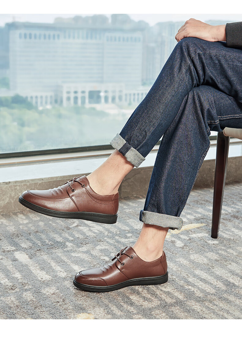 Kangnai Men's Casual Leather Shoes Business Casual Shoes Round Toe Comfortable Cowhide Soft Sole Leather Shoes Dad Shoes 18205074 Red Brown 42